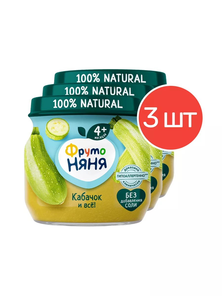 Пюре овощное с 4 месяцев, кабачок, 80 г. 3 шт