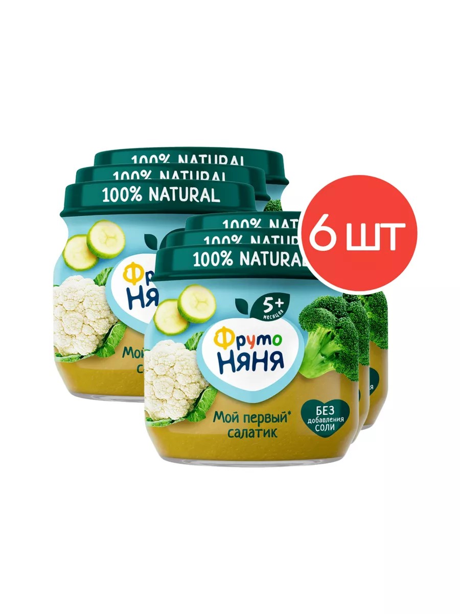 Овощное пюре «ФрутоНяня» приготовлено из специально отборных натуральных овощей, прекрасно подойдет для знакомства малыша с палитрой новых вкусов и позволит разнообразить его вкусовые ощущения. Овощное пюре из брокколи, кабачков и цветной капусты «Мой первый салатик» отлично подойдет для расширения рациона малыша, уже попробовавшего монокомпонентные пюре. «Мой первый салатик» поможет познакомить ребенка с новой палитрой вкусов.