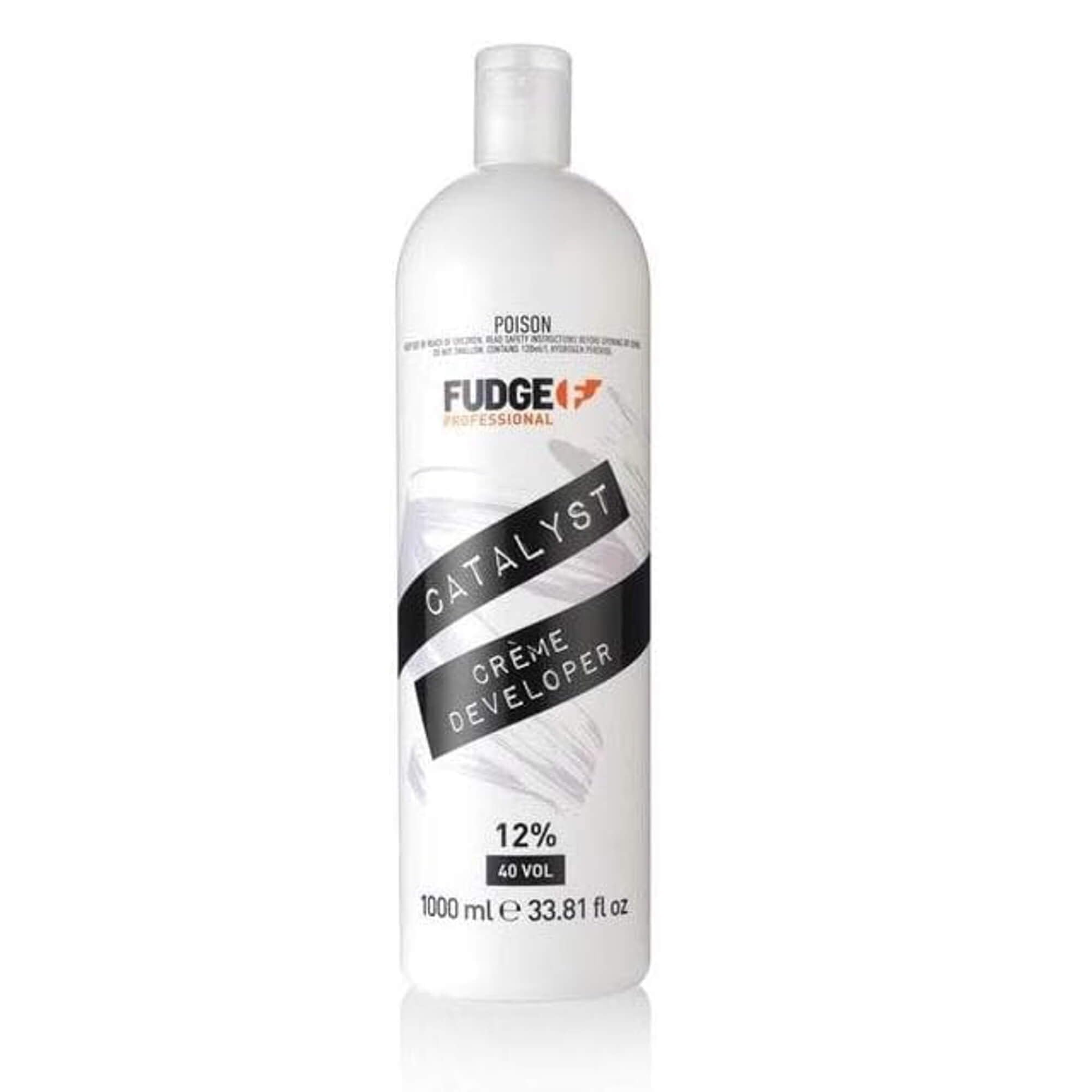 Fudge catalyst - 12%. gentle Crème developer that conditions and protects. Follow colour manufacturers Directions carefully. For use with all head paint oxidative colours. For professional use only. Read Safety Directions before using. INGREDIENTS AQUA, HYDROGEN PEROXIDE, CETEARYL ALCOHOL, SODIUM LAURETH SULFATE, GLYCERIN, DIMETHICONE, PARFUM, OXYQUINOLINE SULFATE, PHOSPHORIC ACID, TETRASODIUM EDTA DIRECTIONS stay away from kids See more