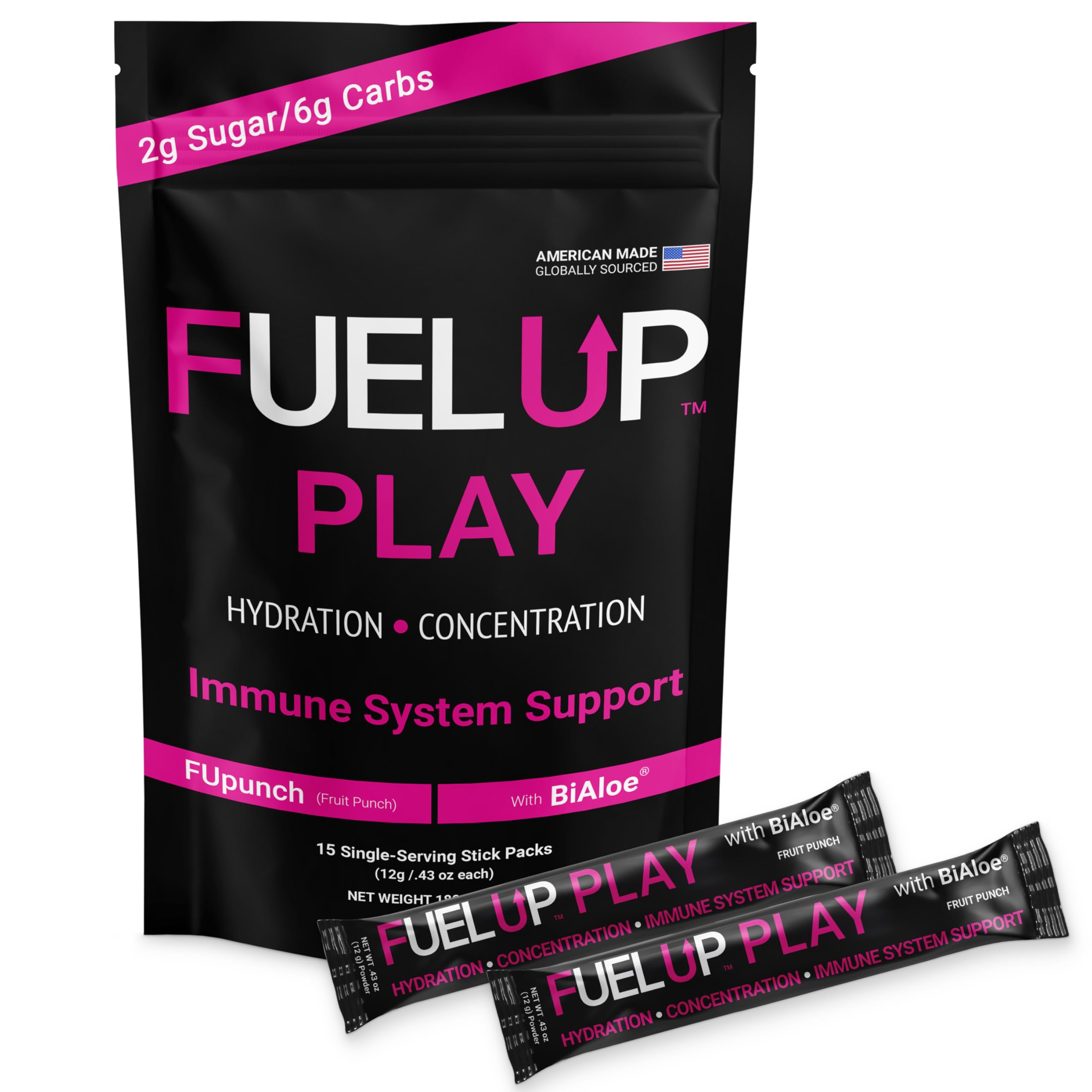 Fuel Up Play Electrolyte Powder with BiAloe | Hydration + Focus Formula | Sugar Free | 15 Single-Serve Stick Packs | Fruit Punch Fruit Punch 6.5 Ounce (Pack of 1)