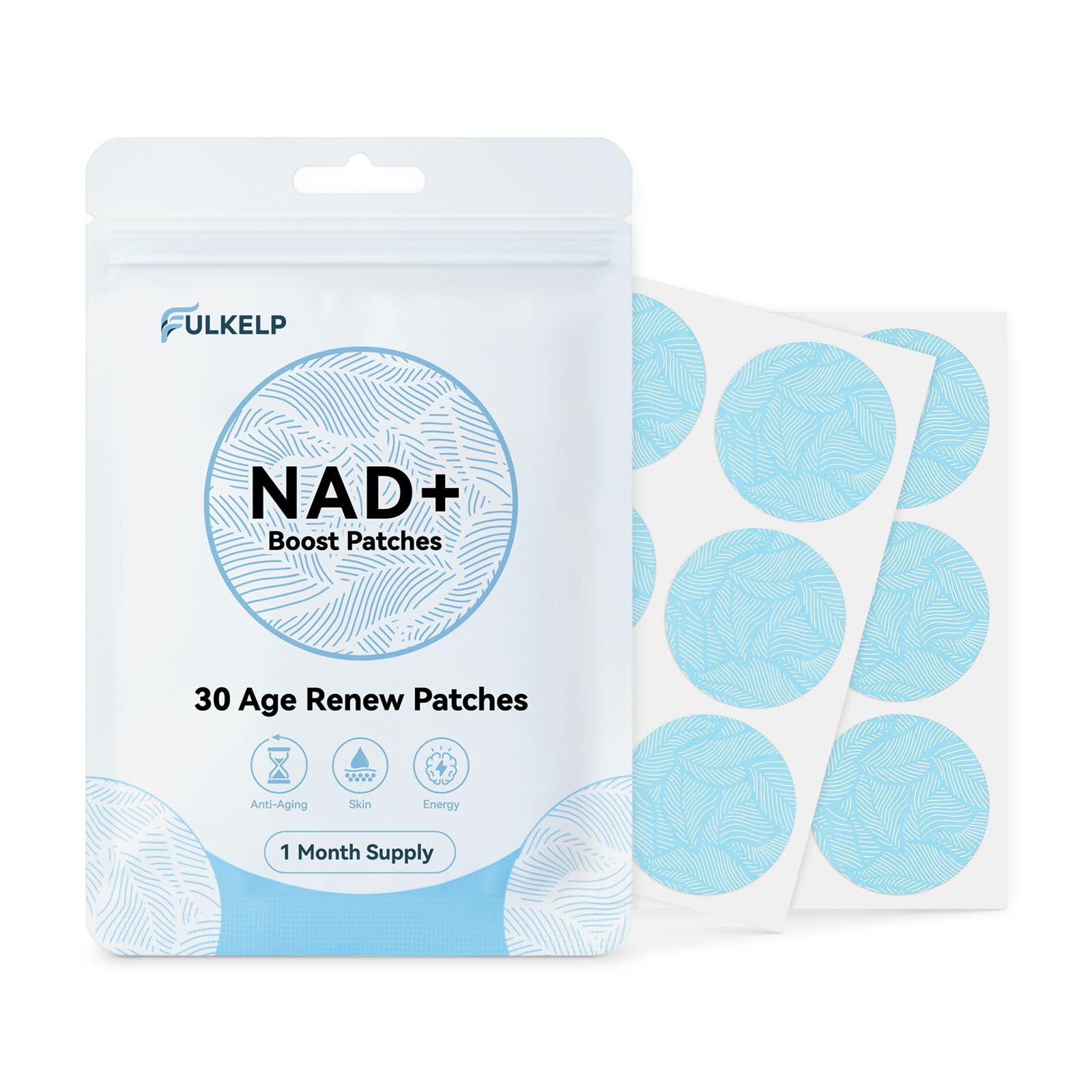 FULKELP NAD Patches for Women and Men 8 Hour Time-Release for Cellular Energy & Focus A New Kind of NAD Supplement with Nicotinamide Riboside Resveratrol CoQ10 30 Patches