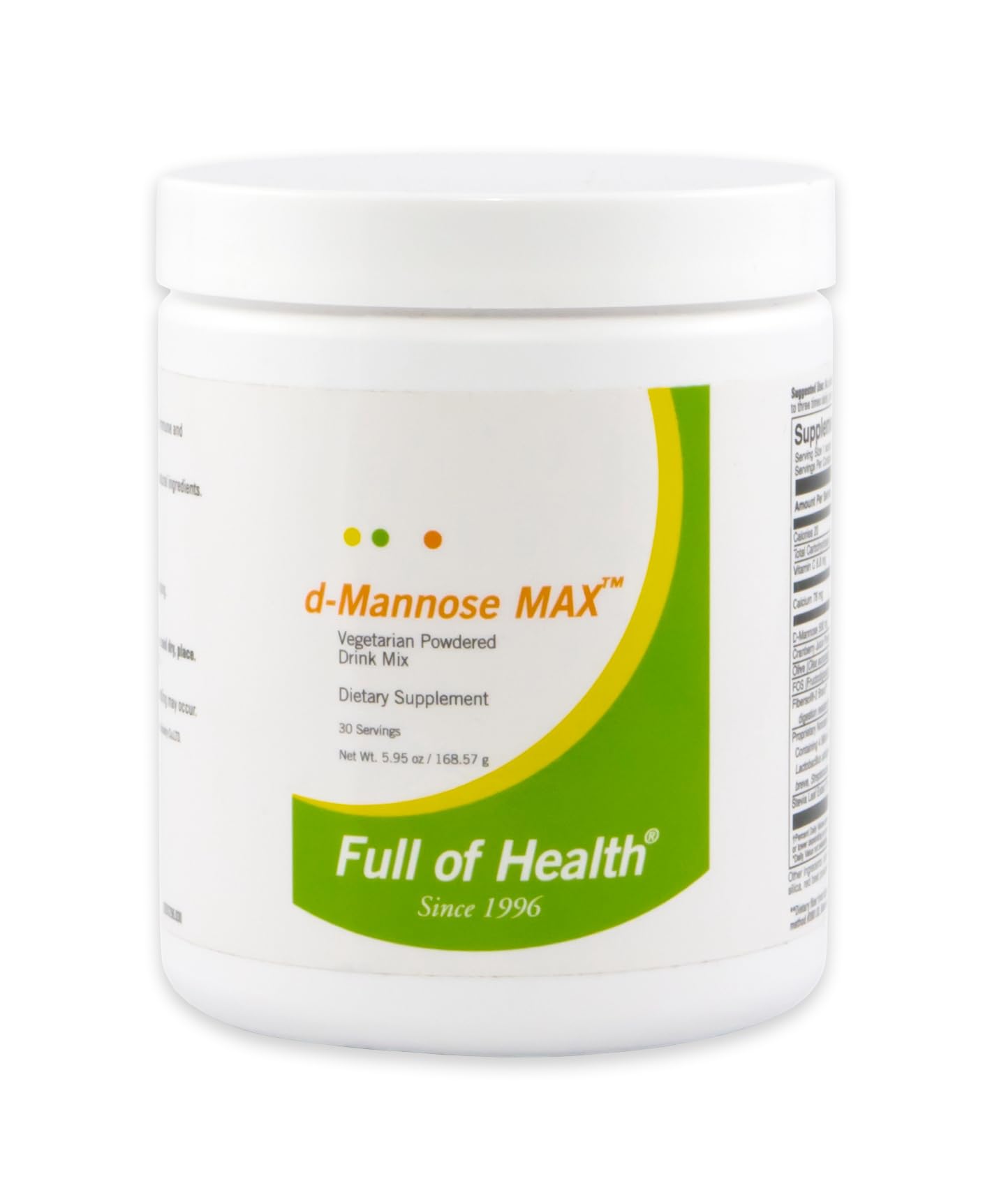 PRODUCT SPECIFICATIONS: d-Mannose MAX Powder comes in a jar holding thirty servings. One scoop (0.2 oz) should be mixed in water and taken one to three times daily, or as directed by a healthcare practitioner. URINARY HEALTH SUPPLEMENT: d-Mannose MAX pleasant, berry-flavoured drink has been known for its protective properties of the urinary bladder. EFFECTIVE FORMULATION: This tried-and-tested mix has a proven record of safety and efficacy in promoting the urinary health in women, men, and children. Manufactured in the USA with domestic and imported ingredients in a GMP Compliant Facility. QUALITY INGREDIENTS: d-Mannose MAX is composed of phytonutrients, soluble fibres non-dairy blend of probiotics, prebiotic FOS (fructooligosaccharide) that are known to promote healthy function of lower urinary tract, the bladder in particular. SPECIALTY NATURAL BLEND: Full of Health d-Mannose MAX offers a specialty blend of quality ingredients that support the urinary tract affected by E. coli.