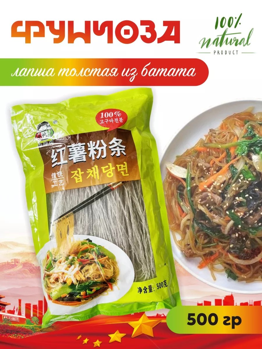 Фунчоза лапша толстая из батата сладкого картофеля 500 гр