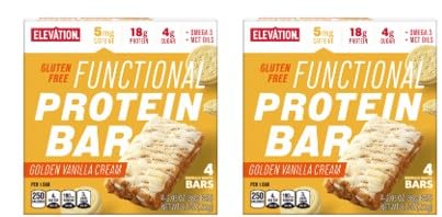 Functional Protein Bar, Golden Vanilla Cream, Gluten Free 8.2oz 232g (Pack of 2). Fuel your day with Elevation Golden Vanilla Cream Functional Protein Bars from ALDI. Packed with protein and essential nutrients, these bars are ideal for post-workout recovery or a quick energy boost on busy days. Each bar features a creamy vanilla flavor that is perfectly balanced with a soft, chewy texture, making it a satisfying snack.