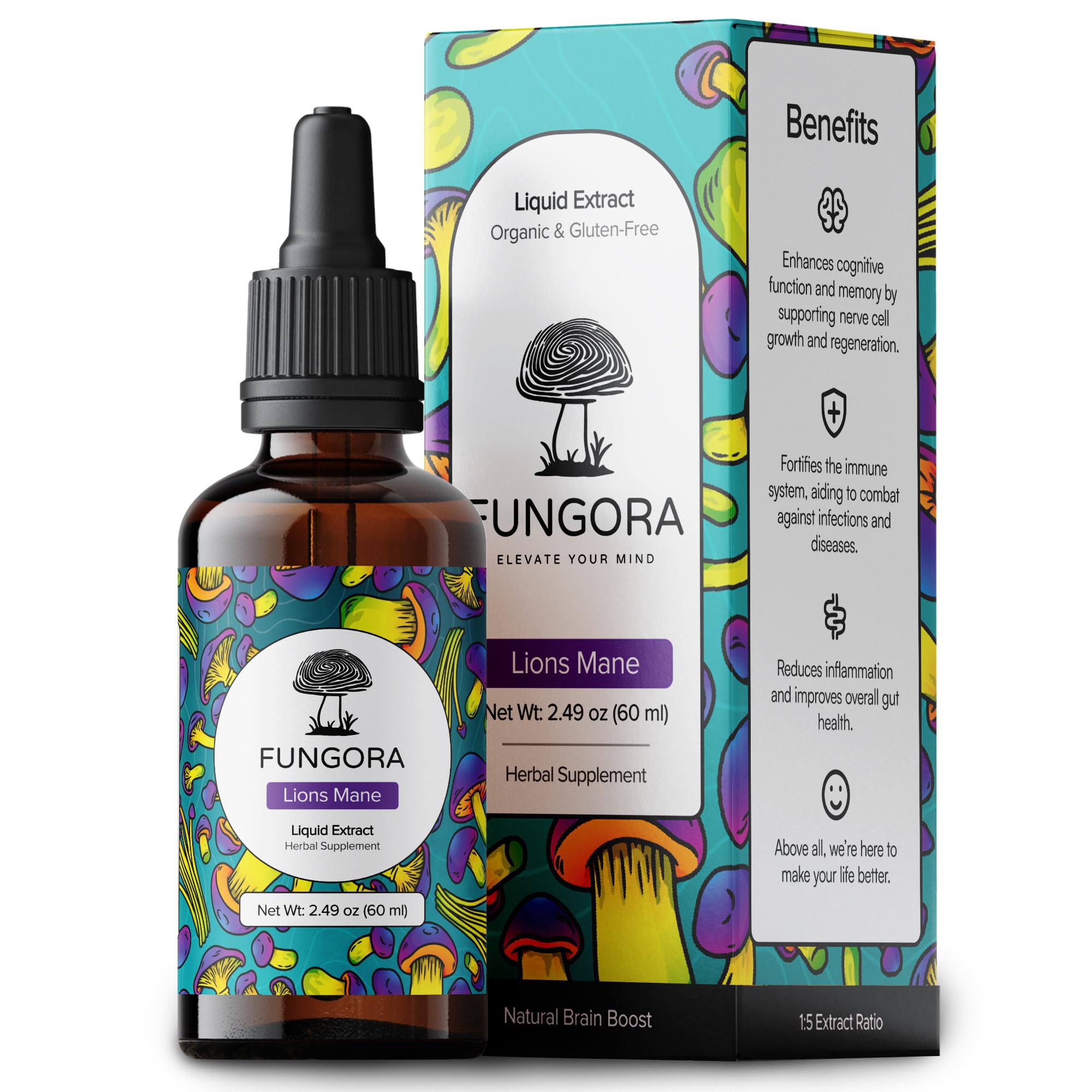 PREMIUM LION'S MANE NOOTROPIC BY FUNGORA Fungora Lion's Mane liquid extract is a powerful nootropic brain supplement designed to enhance memory, focus, and mental clarity. Our USDA Certified Organic mushroom tincture helps combat brain fog while supporting overall cognitive function and nervous system health. BRAIN HEALTH BENEFITS: - Supports memory formation and recall - Enhances focus and concentration - Reduces brain fog and mental fatigue - Promotes nerve growth factor (NGF) production - Supports healthy cognitive aging - Improves mental clarity and processing speed THE FUNGORA STANDARD: ✓ USDA CERTIFIED ORGANIC: From seed to shelf, every step meets rigorous organic standards ✓ 100 FRUITING BODIES: We use only the mushroom's most potent part for maximum efficacy ✓ DUAL-EXTRACTION PROCESS: Our proprietary method captures the full spectrum of beneficial compounds ✓ USA GROWN EXTRACTED: Complete quality control at our American facilities ✓ SUPERIOR ABSORPTION: Liquid format ensures optimal bioavailability for faster results ✓ CLEAN FORMULA: Sugar-free, alcohol-free, vegan, gluten-free, non-GMO, soy-free ✓ THIRD-PARTY TESTED: Every batch verified for purity, potency, and high beta-glucan content THE FUNGORA DIFFERENCE: At Fungora, we believe in the transformative power of premium mushrooms. Our Lion's Mane is carefully cultivated in the USA using organic practices, then extracted in small batches to preserve its natural intelligence. Each 2 fl oz bottle provides 60 servings of pure, potent cognitive support. Our alcohol-free formula uses organic sunflower glycerin for a naturally pleasant taste that makes daily use enjoyable. PERFECT FOR: - Professionals seeking enhanced work performance - Students needing focus for studying - Adults supporting cognitive health - Anyone experiencing brain fog or mental fatigue - Wellness enthusiasts optimizing mental performance HOW TO USE: Take 1-2 droppers (1-2ml) daily. Add to coffee, tea, smoothies, or take directly. For optimal results, use consistently for 5 days, break for 2 days, then repeat. INGREDIENTS: Organic Lion's Mane (Hericium erinaceus) Fruiting Body Extract, Organic Sunflower Glycerin, Distilled Water QUALITY COMMITMENT: Each batch undergoes rigorous third-party testing for heavy metals, microbes, and potency verification. Manufactured in the USA in a cGMP-certified facility. Experience the Fungora difference - where premium quality meets mental performance. These statements have not been evaluated by the FDA. This product is not intended to diagnose, treat, cure, or prevent any disease.IMMUNE NERVOUS SYSTEM SUPPORT - Beyond brain health: supports gut health, nerve regeneration healthy inflammation response 100 satisfaction guaranteed - Risk-free purchase. EASY DAILY BRAIN BOOST - Seamless mixing in coffee, smoothies, or water Perfect for professionals, students seniors seeking mental performance No pills to swallow - pleasant taste. USDA ORGANIC 3RD PARTY TESTED - Premium small-batch Lion's Mane tincture made in USA GMP certified facility Vegan, gluten-free, sugar-free formula with organic glycerin. MAXIMUM STRENGTH LIQUID EXTRACT - 2X faster absorption than capsules 60 servings per bottle (2-month supply) Pure fruiting bodies only NO mycelium, grain fillers, or alcohol. NOOTROPIC BRAIN SUPPORT - Lion's Mane mushroom extract for enhanced memory, focus mental clarity Reduces brain fog supports cognitive function with organic Hericium erinaceus fruiting bodies.