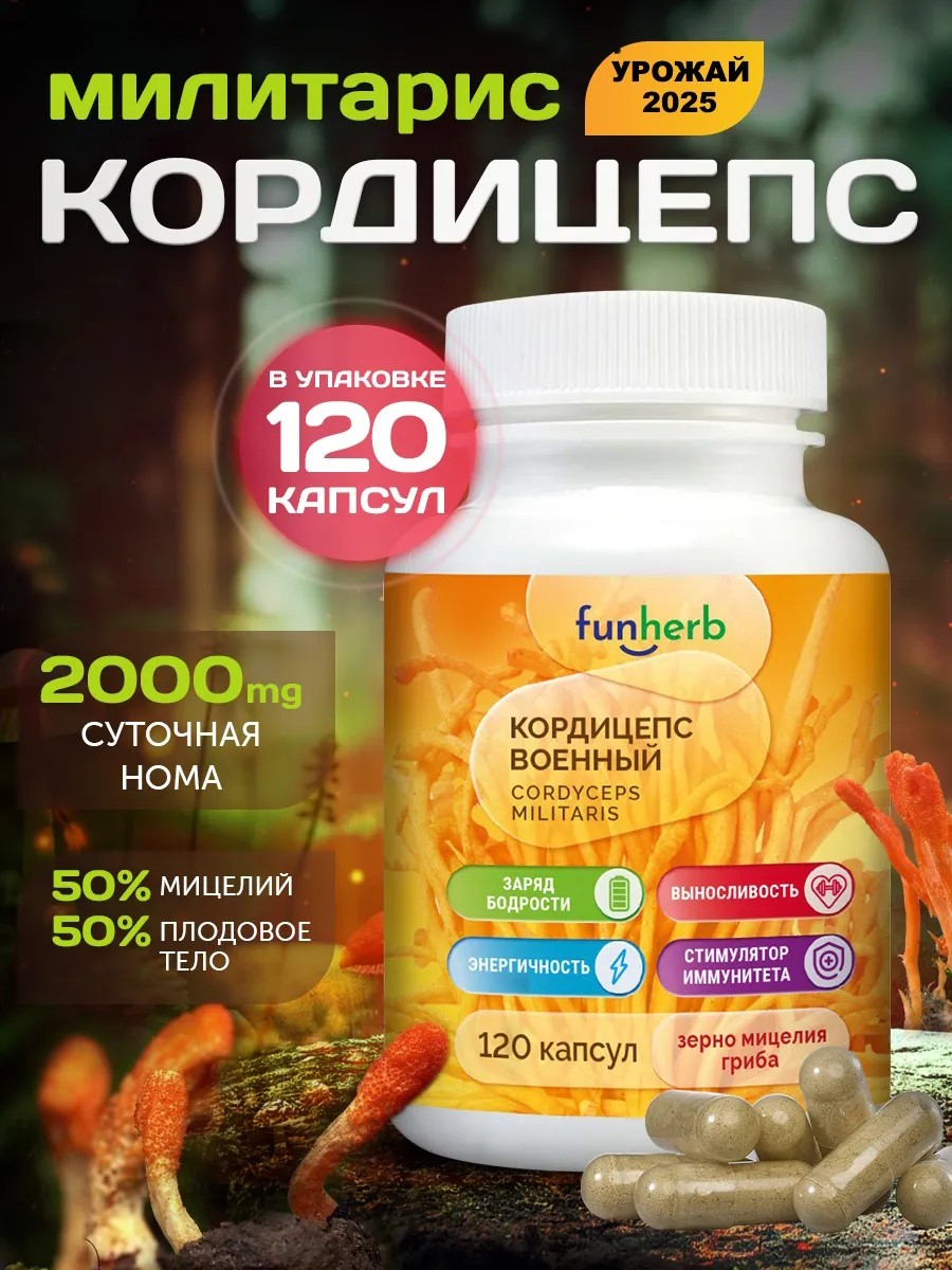 | Комплектация | капсулы с мицелием гриба кордицепс военный |