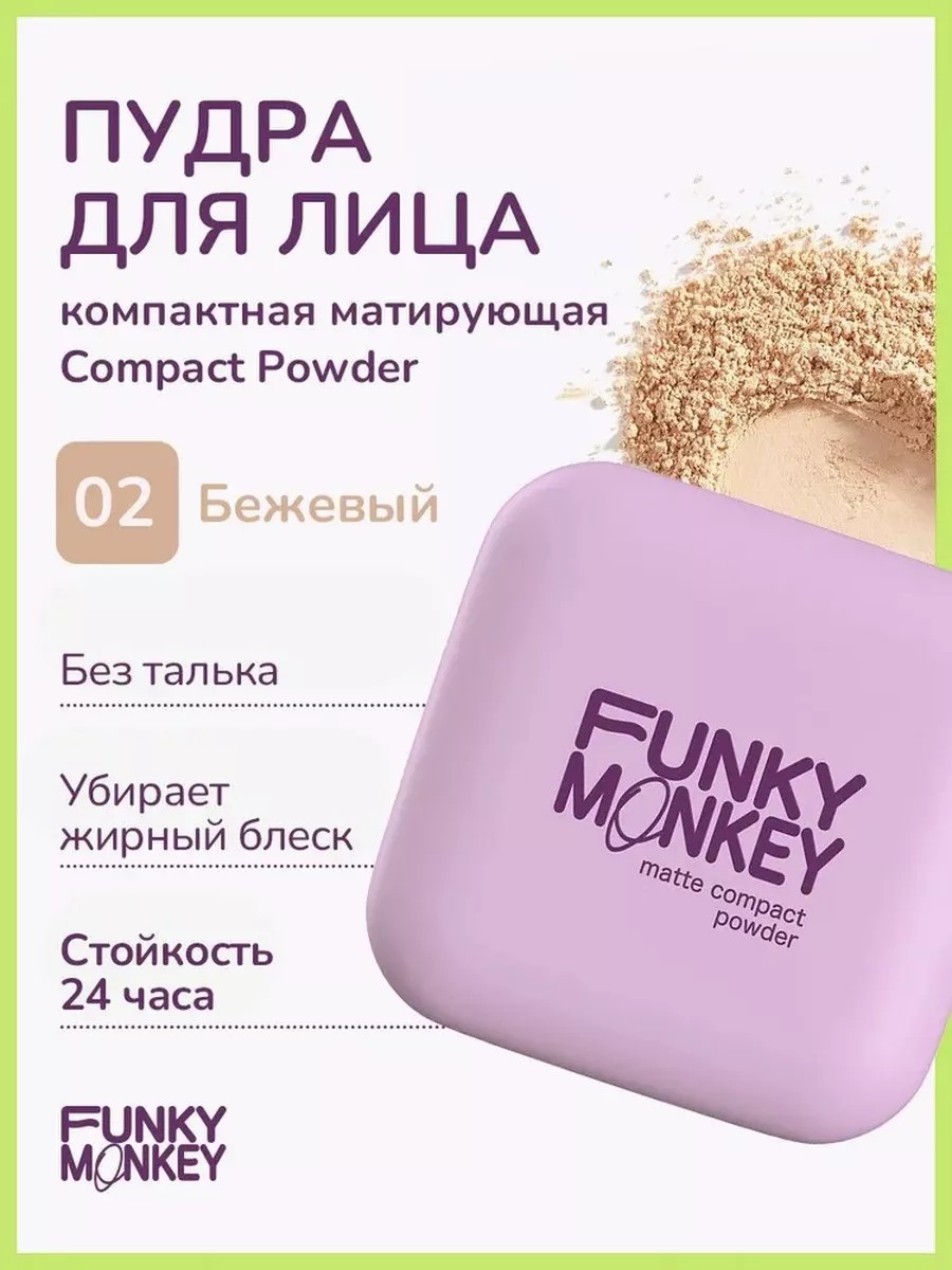 | Комплектация | Пудра для лица Funky Monkey Compact Powder матирующая тон 02 8г |