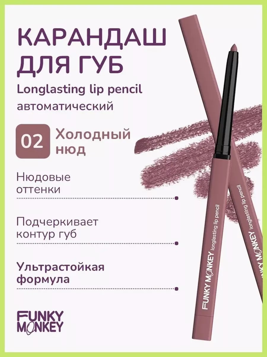 Карандаш для губ от Funky Monkey - это не просто обычный карандаш для губ. Он обладает матовой формулой, которая держится на губах весь день, благодаря этому вы можете быть уверены, что ваш макияж останется безупречным в любых условиях.