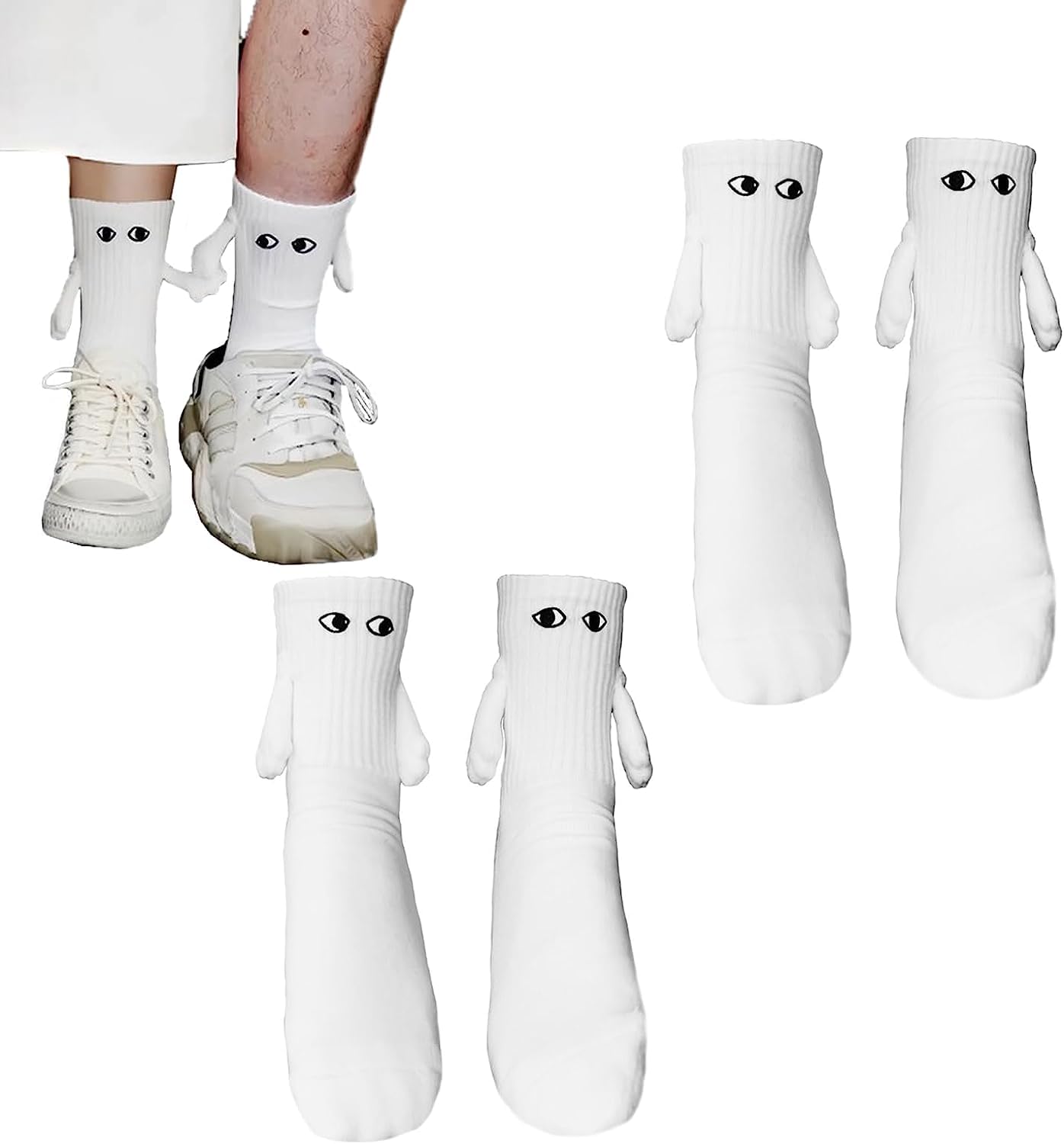 Funny Couple Socks Magnetic Hand in Hand Socks Magnetic Magnet Holding Hand Couple Socks Magnetic Sucktion 3d Doll Couple Socks Big Eye Socks for Couples Friends Sisters Lovers (2p white)