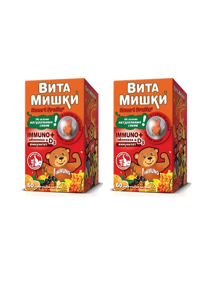 Линия биокомплексов ВитаМишки - вкусные детские витамины №1 в России - жевательные мармеладные мишки на основе натуральных соков.ВитаМишки Immuno + облепиха - сбалансированный витаминно-минеральный комплекс в виде вкусных мармеладных пастилок-мишек с натуральными фруктовыми и овощными экстрактами для детей с 3-х лет.• Снижает риск развития простудных заболеваний.• Способствует укреплению иммунитета.• Способствует ускорению процесса выздоровления.Жевательные пастилки с апельсиновым, персиковым, виноградным и лимонным вкусом.