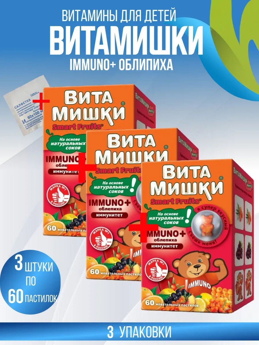 Витамишки Иммуно+ облепиха, 60 шт, 3 упаковки+салфетка
