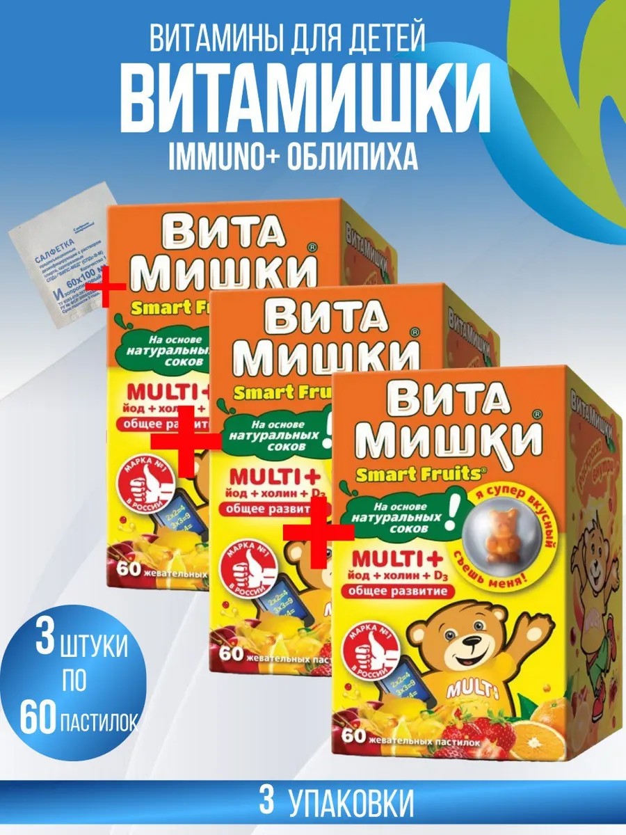 Витамишки Multi + Йод + Холин, 60шт, 3 упаковки+салфетка