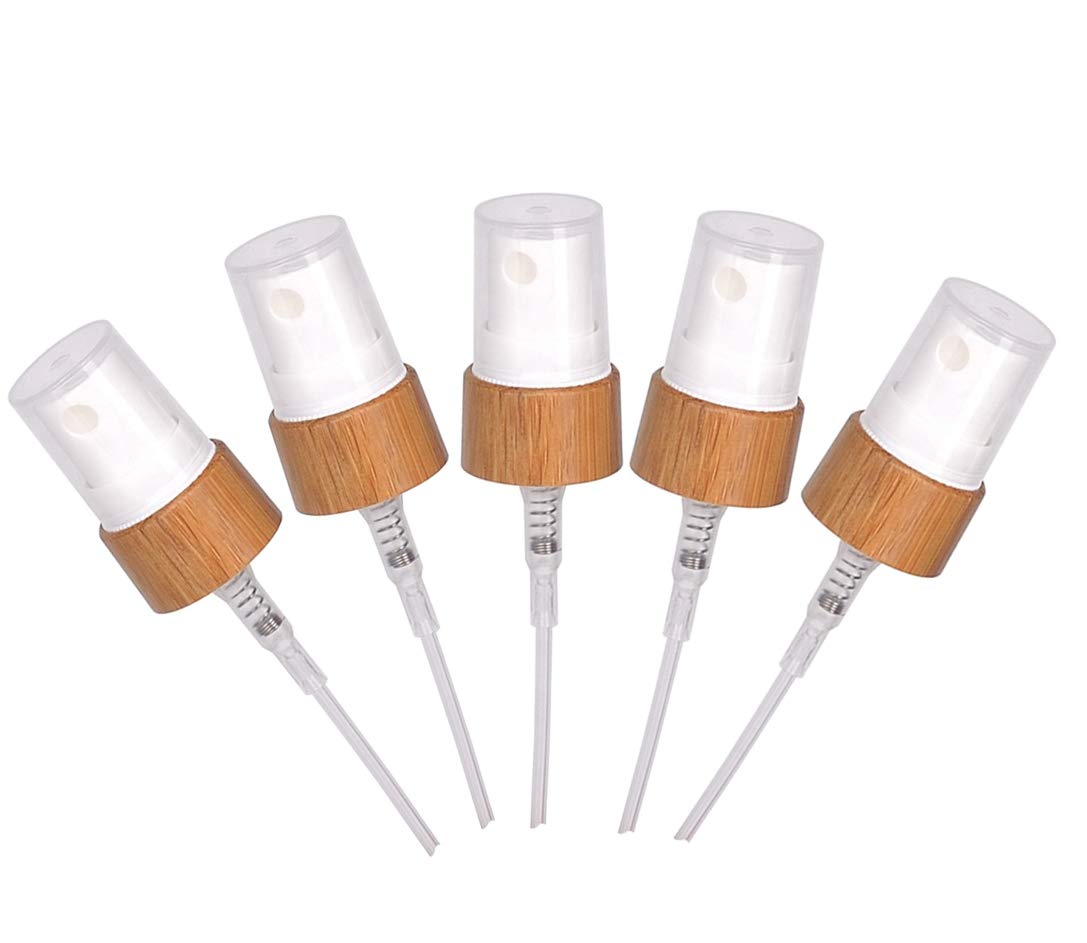 Furnido 5 Pcs Essential Oil Fine Mist Atomizer Tops For 5/10/15/20/30/50/100ml Bottles Replacement Spray Tops with Natural Bamboo Head
