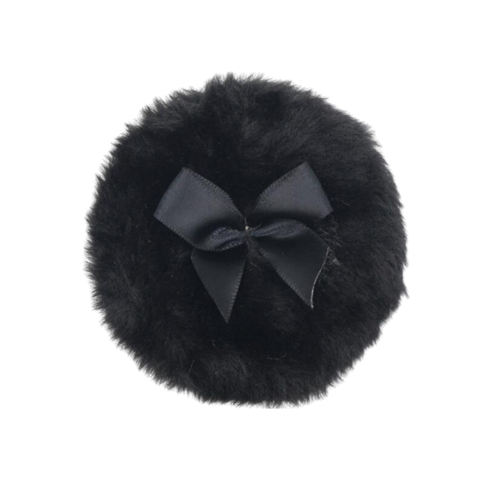 Furry Powder Puff Ultra Soft Round Face Body Powder Puff with Ribbon Bow | Makeup Puff Dry Makeup Tool Body Powder Applicator for Home Travel Black