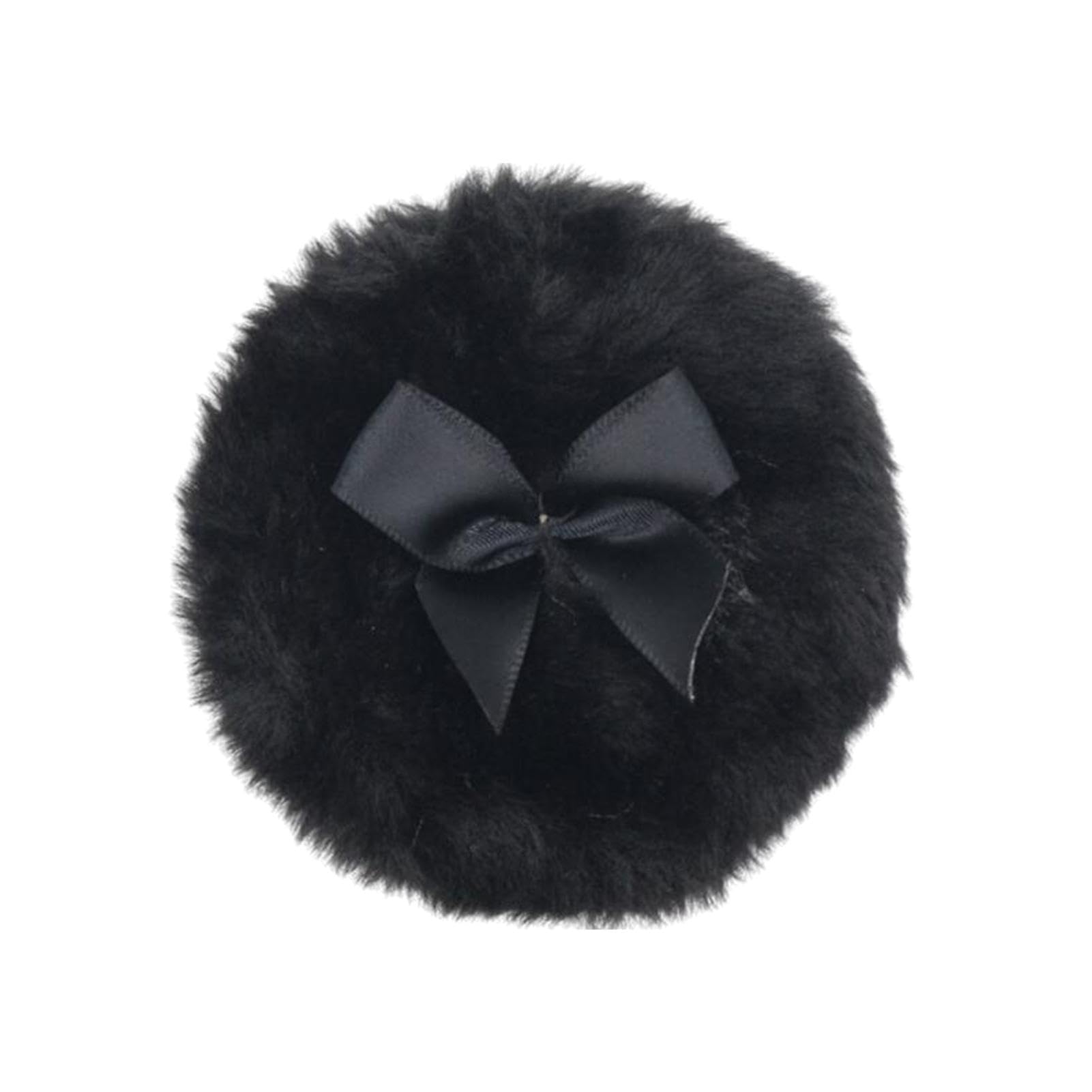Furry Powder Puff | Ultra Soft Round Makeup Powder Puff with Ribbon Bow | Body Powder Applicator for Baby Kid Adult Makeup Tool for Home & Travel Black
