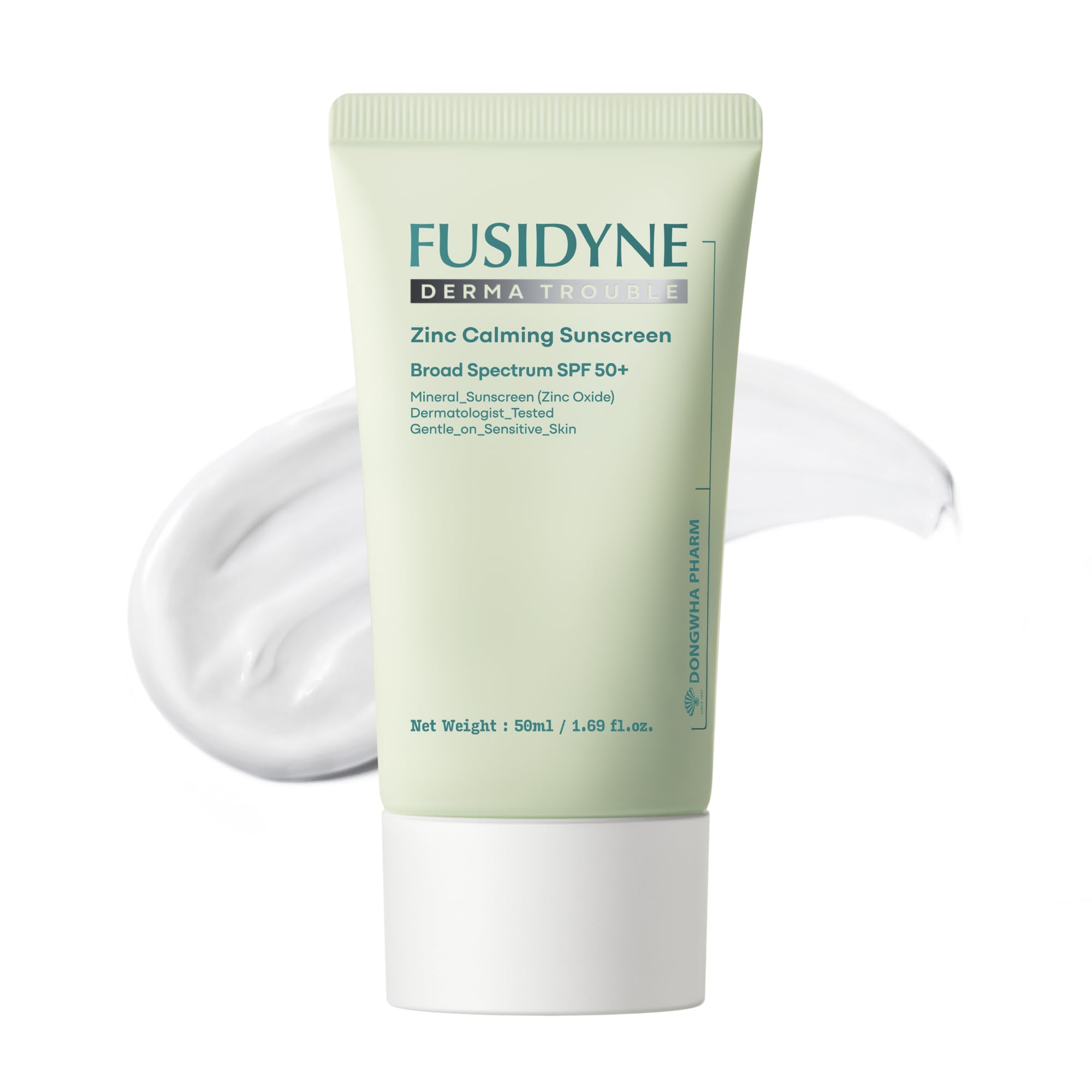 Fusidyne Derma Trouble Zinc Calming Sunscreen SPF 50+ PA++++ Mineral Zinc Oxide 16.9% | Lightweight Moisturizing Lotion for Sensitive & Acne-Prone Skin | 50ml Tube Fragrance-Free Non-Comedogenic