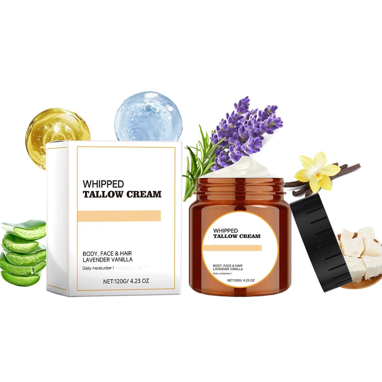 MULTIPURPOSE: Beef tallow cream can be used as face cream, body cream, foot cream and hand cream, suitable for all skin types, leaving skin smoother, firmer and deeply hydrated. FAST ABSORBING: Say goodbye to greasy residue! The beef tallow cream's lightweight texture ensures quick absorption into the skin without any unnecessary greess. MOISTURIZING: beef tallow face cream's unique formula helps lock in moisture and forms a protective barrier on the skin to prevent moisture loss throughout the day, keeping skin nourished throughout the day. GENTLE AND SAFE: Beef tallow face cream is made from natural honey extract, which can deeply moisturize your skin, rejuvenate it, and leave your skin feeling soft and silky. BEEF TALLOW CREAM: tallow and honey balm is a multi-purpose balm that elevates your skin care routine, providing deep hydration and soothing relief for dry skin.