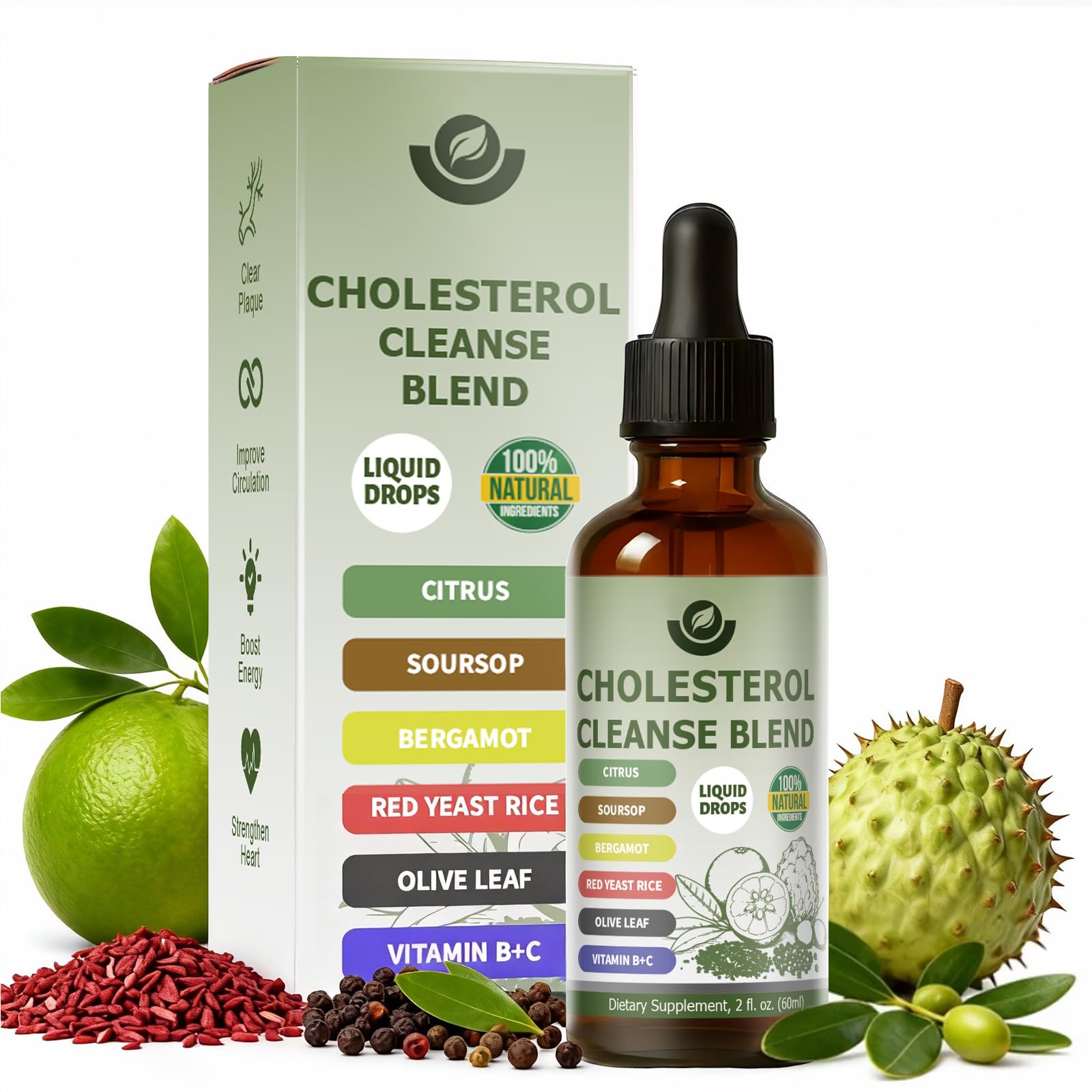 Quality Assurance Every drop of our formula is 100 plant-based, free from synthetic fillers or harsh chemicals—no unnecessary additives your body doesn't need. RESONA Red Yeast Rice Cleanse Skip the hassle of swallowing pills—just 2 mL a day delivers cleaner, sustained energy while supporting healthy cholesterol levels. This premium formula is expertly crafted to regulate cholesterol effectively, with enhanced absorbability for optimal results. Gentle on the stomach and non-irritating, it strengthens your body's natural ability to maintain balanced cholesterol levels, making it a seamless addition to your daily wellness routine. Multiple Benefits This Citrus Bergamot supplement targets high cholesterol to help you maintain balanced levels—without the unwanted side effects of brain fog or muscle discomfort. Just make it a daily part of your routine, and you'll feel the difference: better cholesterol health, sustained energy, and long-lasting comfort. Citrus Bergamot Drops Elevate your daily health regimen with our easy-to-use Citrus Bergamot Drops. Designed for hassle-free consumption, you can take it straight or effortlessly mix it into your morning juice or water. Boasting a naturally mild flavor with zero lingering aftertaste, it fits seamlessly into any routine. Plant-Based Cholesterol-Lowering Formula This premium formula combines a powerhouse blend of organic red yeast rice, soursop, citrus bergamot, garlic black pepper, olive leaf, and vitamins B C for comprehensive cholesterol care. Organic red yeast rice and citrus bergamot work synergistically to help maintain cholesterol within a normal range, while the added multivitamins boost overall body vitality. What's more, black pepper extract is included to enhance nutrient absorption—ensuring your body fully utilizes every beneficial ingredient for maximum effectiveness.