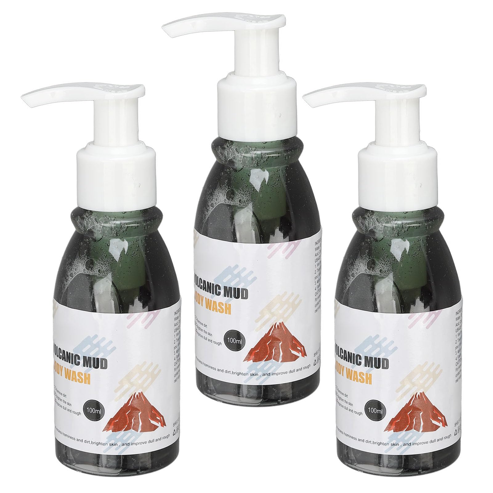 Fyearfly Moisturizing Shower Gel 3 Pieces 100ml Volcanic Mucus Body Wash Gel Skin Lightening Moisturizing Itching Relieving OilRegulating Volcanic Mud