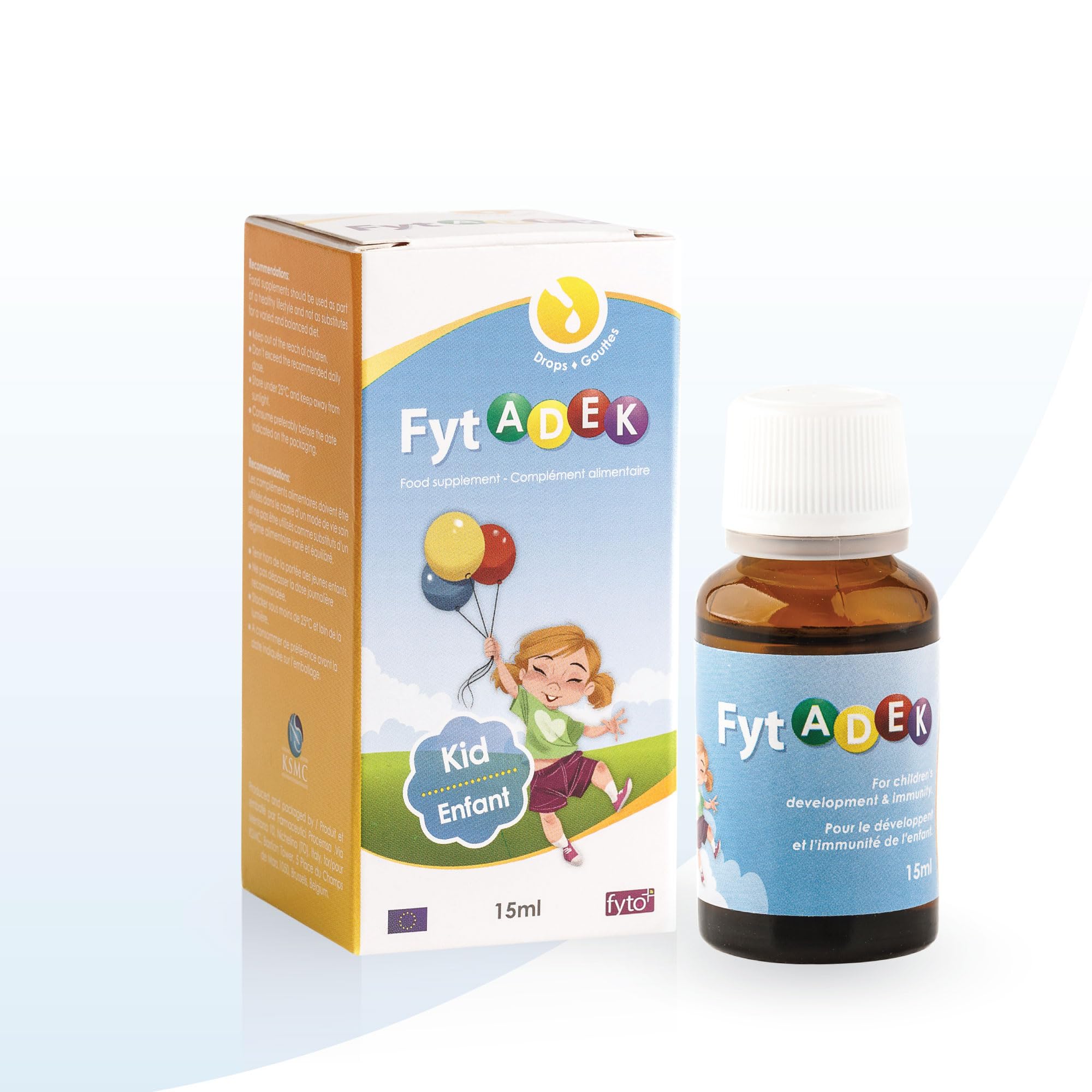 FytADEK is a complete food supplement, specially formulated for children, to support their growth and development optimally. Combining the benefits of vitamins A, D3, E and K, this product provides versatile support for children's overall health. Vitamin A contributes to the maintenance of normal vision, supports normal immune function, and contributes to the health of the skin and mucous membranes. Vitamin D3 contributes to the normal absorption of calcium and phosphorus, supporting strong bones and teeth. Vitamin E: A powerful antioxidant, vitamin E protects cells against oxidative damage, reducing the risk of chronic diseases and supporting cardiovascular health. Vitamin K: Vitamin K also contributes to bone health by promoting calcium fixation. It helps prevent excessive bleeding and is essential for maintaining bone density. FytADEK is carefully designed to meet the needs of children ages 3 and up, as well as young adults. Its formulation in drops allows easy and precise administration, guaranteeing optimal absorption of nutrients. INGREDIENTS Vitamins A, D3, E and K DIRECTIONS FOR USE Children 3 to 4 years old: 5 drops (0.25 ml) per day. Children over 4 years old and adults: 10 drops (0.5 ml) per day. Adults and young adults: 20 drops (1 ml) per day. Easy Administration and Pleasant Taste: The easy-to-dose, pleasant-tasting drops allow for simple daily dosing, integrated into your child's routine, without resistance. Natural and Hypoallergenic Formula: FytADEK is free from gluten, lactose, soy, and artificial additives. Its formula is 100 vegan, ideal for children with specific dietary needs or food sensitivities. Vitamin D3 helps with the absorption of calcium, essential for strong bones and teeth. Vitamin A supports eye health and contributes to normal immune function, while vitamin E protects cells from oxidative stress. FytADEK promotes harmonious growth with a blend of essential vitamins, including vitamins A, D3, E, and K, necessary for normal childhood development. FytADEK est un complément alimentaire complet, spécialement formulé pour les enfants, afin de soutenir leur croissance et leur développement de manière optimale. Combinant les bienfaits des vitamines A, D3, E et K, ce produit offre un soutien polyvalent à la santé globale des enfants. La vitamine A contribue au maintien d'une vision normale, soutient une fonction immunitaire normale, et participe à la santé de la peau et des muqueuses La vitamine D3 contribue à l'absorption normale du calcium et du phosphore, soutenant ainsi des os et des dents solides. Vitamine E : Puissant antioxydant, la vitamine E protège les cellules contre les dommages oxydatifs, réduisant les risques de maladies chroniques et soutenant la santé cardiovasculaire. Vitamine K : la vitamine K contribue également à la santé des os en favorisant la fixation du calcium. Elle aide à prévenir les saignements excessifs et est essentielle pour le maintien de la densité osseuse. FytADEK est soigneusement conçu pour répondre aux besoins des enfants de 3 ans et plus, ainsi qu'aux jeunes adultes. Sa formulation en gouttes permet une administration facile et précise, garantissant une absorption optimale des nutriments. INGRÉDIENTS Vitamines A, D3, E et K MODE D'EMPLOI Enfants de 3 à 4 ans : 5 gouttes (0,25 ml) par jour. Enfants de plus de 4 ans et adultes : 10 gouttes (0,5 ml) par jour. Adultes et jeunes adultes : 20 gouttes (1 ml) par jour. Administration Facile et Goût Agréable : Les gouttes faciles à doser et au goût plaisant permettent une prise quotidienne simple, intégrée dans la routine de votre enfant, sans résistance. Formule Naturelle et Hypoallergénique : FytADEK est exempt de gluten, lactose, soja et additifs artificiels. Sa formule est 100 vegan, idéale pour les enfants ayant des besoins alimentaires spécifiques ou des sensibilités alimentaires. La vitamine D3 aide à l'absorption du calcium, essentiel pour des os et des dents solides. La vitamine A soutient la santé des yeux et contribue à une fonction immunitaire normale, tandis que la vitamine E protège les cellules contre le stress oxydatif. FytADEK favorise une croissance harmonieuse grâce à un mélange de vitamines essentielles, notamment les vitamines A, D3, E et K, nécessaires au développement normal des enfants.