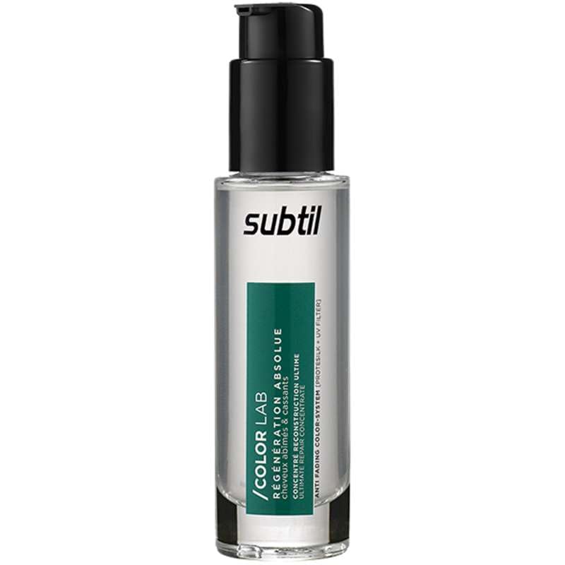 Treatment for damaged, brittle, colored, and highlighted hair. Enriched with biomineral ceramides, renowned for their strong affinity with keratin, this concentrate will tame even the most stubborn hair fibers! Thanks to its deep-repairing action, damage is repaired and the hair's lipid barrier is restored. The result? You'll once again enjoy supple, nourished, and silky hair with an ultra-soft feel! INGREDIENTS CYCLOPENTASILOXANE, DIMETHICONOL, PARFUM FRAGRANCE, ETHYLHEXYL METHOXYCINNAMATE, BIS-DIISOPROPANOLAMINO-PG-PROPYL DIMETHICONE BIS-ISOBUTYL PEG-14 COPOLYMER, AQUA WATER, HYDROLYZED SILK PG-PROPYL METHYLSILANEDIOL CROSSPOLYMER, GLYCERIN, BUTYLOCTANOL, POLYSORBATE 20, HELIANTHUS ANNUUS (SUNFLOWER) SEED EXTRACT, DECYL GLUCOSIDE, SODIUM BENZOATE, BHT. DIRECTIONS Apply to hair, focusing on damaged areas. Do not rinse. SAFETY WARNING For external use only. See moreConcentrated for damaged hair.Régénération absolue SUBTIL cheveux abimes cassants 50mlDESCRIPTION DU PRODUIT DESCRIPTION DU PRODUIT Soin pour cheveux abîmés et cassants, colorés et méchés. Enrichi en céramides biominétiques réputées pour leur forte affinité avec la kératine, ce concentré permettra de venir à bout des fibres les plus récalcitrantes! Grâce à son action réparatrice en profondeur, les brèches sont réparées et la barrière lipidique du cheveu restaurée. Résultat, vous profitez à nouveau d'une matière souple, nourrie et soyeuse, au toucher ultra doux! INGRÉDIENTS CYCLOPENTASILOXANE, DIMETHICONOL, PARFUM FRAGRANCE, ETHYLHEXYL METHOXYCINNAMATE, BIS-DIISOPROPANOLAMINO-PG-PROPYL DIMETHICONE BIS-ISOBUTYL PEG-14 COPOLYMER, AQUA WATER, HYDROLYZED SILK PG-PROPYL METHYLSILANEDIOL CROSSPOLYMER, GLYCERIN, BUTYLOCTANOL, POLYSORBATE 20, HELIANTHUS ANNUUS (SUNFLOWER) SEED EXTRACT, DECYL GLUCOSIDE, SODIUM BENZOATE, BHT. MODE D'EMPLOI Appliquer sur les cheveux, en insistant sur les zones abîmées. Ne pas rincer. AVERTISSEMENT DE SÉCURITÉ usage externe uniquement Voir plusconcentré pour cheveux abimés.