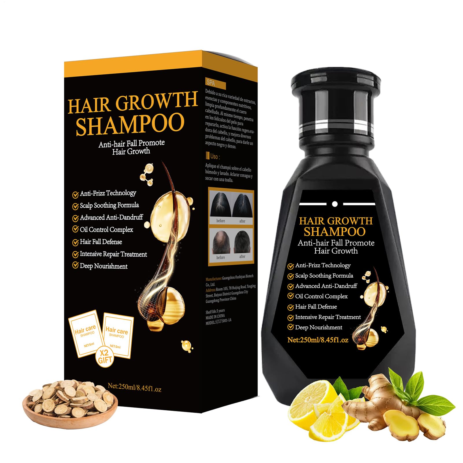 Infused with natural ingredients, this shampoo addresses the root causes of thinning while improving volume and texture. Ideal for daily use, this shampoo revitalizes your hair care routine, offering a solution for those seeking fuller, more vibrant hair. Experience noticeable results with regular application and enjoy the confidence that comes with stronger, revitalized hair. Volume: 250 ml 8.45 fl. oz Intended Use: Suitable for all hair types, especially those seeking hair loss prevention, oil control, and nourishment. Directions: Apply an appropriate amount evenly to wet hair, gently massaging into the scalp and hair. Leave on for 3 to 5 minutes, then rinse thoroughly with water. List: 1 piece Hair Growth Shampoo Note: Due to different lighting and screen settings, the item's color may be slightly different from the picture. Due to different manual measurements, please allow a 1-2 cm size difference. INGREDIENTS Refer to the description SAFETY WARNING Not applicable See moreDaily Freshness: This hair growth shampoo removes impurities and excess sebum for a healthy base, preventing irritation and leaving the scalp feeling refreshed all day long, whether at work or during outdoor activities. Soothing for All Scalps: Designed to calm discomfort with its soothing properties, this anti-hair loss shampoo ensures long-lasting comfort for all scalp types, ideal during seasonal changes or in dry climates. Gentle Natural Extracts: The formula of this shampoo contains natural extracts to effectively nourish the scalp without causing irritation. It supports stronger, healthier hair growth during regular washing. Reduced Hair Loss: This anti-hair loss shampoo strengthens weakened roots to effectively reduce hair loss. It promotes thicker regrowth and fuller hair, suitable for both professional and relaxed environments, with a gentle formula. Frizz Reduction: The fortifying shampoo effectively reduces frizz while increg natural shine, ensuring smooth, manageable hair that stays disciplined even in humid weather.Shampooing Anti Chute 250ml Shampoing Fortifiant pour Femmes Après-Shampooing Naturel Nettoyage Profond Apaisant le Cuir Chevelu Volume IntenseDESCRIPTION DU PRODUIT DESCRIPTION DU PRODUIT Infusé d'ingrédients naturels, il les causes profondes de l'affinement tout en améliorant le volume et la texture. Idéal pour une utilisation quotidienne, ce shampooing revitalise votre routine capillaire, offrant une solution pour ceux qui recherchent des cheveux plus pleins et plus vibrants. Expérimentez des résultats notables avec une application régulière et profitez de la confiance procurée par des cheveux plus forts et revitalisés. Volume: 250 ml 8,45 fl.oz Utilisation prévue: Convient à les types de cheveux, en particulier ceux qui recherchent la prévention de la perte de cheveux, le contrôle de l'huile et la nourriture. Instructions: Appliquez uniformément une quantité appropriée sur les cheveux humides, en mâchant doucement dans le cuir chevelu et les cheveux. Laissez 3 à 5 minutes, puis rincez soigneusement avec de l'eau. Liste: 1 pièce Shampooing de culture de cheveux Note: En raison de différents paramètres d'éclairage et d'écran, la couleur de l'élément peut être légèrement différente de l'image. En raison de différentes mesures manuelles, veuillez permettre une différence de taille de 1 à 2 cm. INGRÉDIENTS Se référer à la description AVERTISSEMENT DE SÉCURITÉ N'est pas applicable Voir plusFraîcheur Quotidienne: Ce shampoing croissance cheveux élimine les impuretés et l'excès de sébum pour une base saine, évitant les irritations et laissant le cuir chevelu rafraîchi toute la journée, au travail ou en activités extérieures. Apaisement pour tout cuir chevelu : Conçu pour calmer les inconforts avec ses propriétés apaisantes, ce shampooing anticheuteux garantit un confort prolongé pour les types de cuir chevelu, idéal lors des changements de saison ou en climat sec. Extraits Naturels Doux: La formulation de ce shampoing contient des extraits de naturelles pour nourrir efficacement le cuir chevelu sans provoquer d'irritation. Il soutient une croissance capillaire plus forte et plus saine lors du nettoyage habituel. Réduction de la chute: Ce shampoing anti-chute les racines fragilisées pour réduire efficacement la perte de cheveux. Il favorise une repousse plus dense et une chevelure plus fournie, adaptée aux environnements professionnels ou détendus, avec une formule douce. Réduction des Frisottis: Le shampooing fortifiant réduit efficacement les frisottis tout en augmentant l'éclat naturel, garantissant des cheveux lisses et maniables qui restent disciplinés même par temps humide.