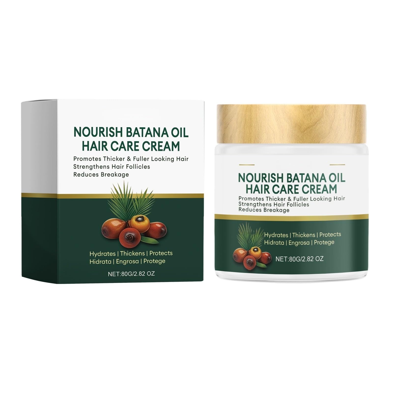 Package Contents: 1 bottle of conditioner Features: 1. Multifunctional Hair Care: Promotes thicker, fuller hair, strengthens hair follicles, reduces breakage, moisturizes the scalp to relieve dryness, and leaves hair soft, shiny, and manageable. 2. Nourishing and Gentle Ingredients: Contains cetearyl alcohol (regulates the scalp), allantoin (soothes the scalp), and palm oil (nourishes and moisturizes the scalp), with gentle, non-irritating ingredients. 3. Refreshing and Pleasant Texture: Lightweight, non-sticky, and non-greasy texture odorless pleasant on the skin suitable for all occasions. 4. Simple and Convenient Use: Apply and massage into wet hair after shampooing to promote absorption. Easy to use and rinse, suitable for daily use. Notes: 1. Please allow for slight errors due to manual measurement. 2. Due to differences in monitors, the photos may not reflect the actual color of the product. 3. Happy online shopping! Our commitment to you: 1. We value every customer and are committed to providing you with friendly customer service. 2. Thank you for your support and understanding! Happy shopping and see you soon! 3. If you are not satisfied with a purchased product, please do not hesitate to contact us. We sincerely hope you enjoy your shopping experience and the well-being that our high-quality products bring you. SAFETY WARNING Store in a cool, dry place away from sunlight. Keep out of reach of children.Multi-purpose and easy to apply: This multi-purpose hair treatment is easily applied to slightly damp hair for a scalp massage or end treatment, fitting perfectly into any beauty routine. Lightweight texture, fast absorption, and non-greasy: Its lightweight, non-sticky, and non-greasy texture absorbs quickly without weighing hair down. Ideal for easy daily care that leaves no residue. Intense hydration of the scalp and lengths: Thanks to its nourishing ingredients like Batana oil, it provides deep hydration, soothes dry and itchy scalps, and prevents dehydration. Strengthens and reduces hair breakage: Formulated to fortify hair follicles, this treatment cream helps reduce breakage and split ends, leaving hair stronger and healthier. For fuller, thicker hair: Our hair cream enriched with Batana oil nourishes and strengthens the hair fiber from the root, promoting the appearance of visibly thicker, fuller hair.Crème Soin Cheveux à l'Huile de Batana – Favorise des Cheveux Plus Épais et Plus Volumineux, Renforce les Follicules Pileux, Réduit la Cassee, Hydrate et Protège – 80gDESCRIPTION DU PRODUIT DESCRIPTION DU PRODUIT Contenu de l'emballage : 1 flacon d'après-shampoing Caractéristiques : 1. Soin capillaire multifonctionnel : Favorise des cheveux plus épais et plus denses, fortifie les follicules pileux, réduit la casse, hydrate le cuir chevelu pour soulager la sécheresse et laisse les cheveux doux, brillants et faciles à coiffer. 2. Ingrédients nourrissants et doux : Contient de l'alcool cétéarylique (régule le cuir chevelu), de l'allantoïne (apaise le cuir chevelu) et de l'huile de palme (nourrit et hydrate le cuir chevelu), avec des ingrédients doux et non irritants. 3. Texture rafraîchissante et agréable : Texture légère, non collante et non grasse sans odeur à l'utilisation agréable sur la peau convient à toutes les occasions. 4. Utilisation simple et pratique : Appliquer et masser sur cheveux humides après le shampoing pour favoriser l'absorption. Facile à utiliser et à rincer, convient à un usage quotidien. Remarques : 1. Veuillez prévoir une légère marge d'erreur due à la mesure manuelle. 2. En raison des différences entre les écrans, les photos peuvent ne pas refléter la couleur réelle du produit. 3. Bon shopping en ligne ! Notre engagement envers vous : 1. Nous accordons une grande importance à chaque client et nous nous engageons à vous offrir un service client convivial. 2. Merci de votre soutien et de votre compréhension ! Bon shopping et à bientôt ! 3. Si vous n'êtes pas satisfait(e) d'un produit acheté, n'hésitez pas à nous contacter. Nous espérons sincèrement que vous apprécierez votre expérience d'achat et le bien-être que nos produits de haute qualité vous apporteront. AVERTISSEMENT DE SÉCURITÉ Conserver dans un endroit frais et sec, à l'abri du soleil. Tenir hors de portée des enfants.Soin multi-usages et facile à appliquer: Ce soin capillaire multi-usages s'applique facilement sur cheveux légèrement humides pour un massage du cuir chevelu ou un soin des pointes, s'intégrant parfaitement à toute routine beauté. Texture légère, absorption rapide sans gras: Sa texture légère non collante et non grasse pénètre rapidement sans alourdir les cheveux. Idéale pour un soin quotidien facile qui ne laisse aucun résidu. Hydratation intense du cuir chevelu et des longueurs: Grâce à ses ingrédients nourrissants comme l'huile de Batana, elle procure une hydratation profonde, apaise les cuirs chevelus secs et démangeaisons, et prévient la déshydratation. Renforce et réduit la casse des cheveux: Formulée pour fortifier les follicules pileux, cette crème de soin aide à réduire la casse et les pointes fourchues, laissant les cheveux plus résistants et en meilleure santé. Pour des cheveux plus volumineux et plus épais: Notre crème capillaire enrichie à l'huile de Batana nourrit et renforce la fibre capillaire dès la racine, favorisant une apparence de cheveux plus épais et avec plus de volume de manière visible.