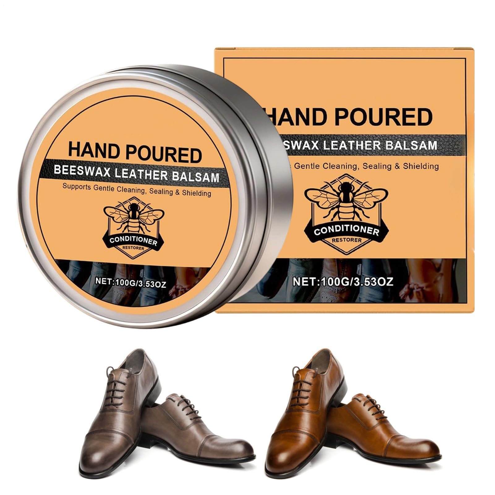This shoe repair balm is a versatile solution designed to easily rejuvenate and protect leather goods. It enhances the leather's natural luster through effective polishing and detailing, making it ideal for boots, jackets, handbags, and even furniture such as sofas and car seats. Its advanced conditioning formula revitalizes worn leather, ensuring your belongings retain their elegance and durability. Specification Product Name: Leather Conditioner Product Size: Approx. 8.3 x 8.3 x 3 cm 3.27 x 3.27 x 1.18 inches Weight: 100g Product List: 1 Leather Conditioner Note: Due to different lighting and screen settings, the item's color may be slightly different from the picture. Due to different manual measurements, please allow a size difference of 1 to 2 cm.Seasonal Transition Care: Handbag leather conditioner delivers powerful conditioning performance by moisturizing the exterior and locking in natural oils, protecting against hardening and discoloration as temperatures fluctuate. Wide Leather Compatibility: Designed for versatility, this leather furniture conditioner works perfectly on shoes and furniture, providing adaptable care for various leather materials to maintain their appearance and functionality over time. Oil Dust Removal Efficiency: Jacket leather conditioner delivers powerful oil and dust removal performance while maintaining the leather's natural texture, providing reliable care for everyday use and protection against buildup. Dust Ingress Resistance: Boot leather conditioner seals leather surfaces against the buildup of dust and debris, preserving the appearance and texture of leather goods like boots when stored or used in dusty environments. Restoring the supple touch: this leather conditioner revitalizes the texture of the material, leaving it soft and smooth to the touch, which improves comfort of use and preserves the luxurious feel of furniture, bags or car interiors.Crème après-shampoing pour cuir de botte – 100 g de d'abeille, baume de soin pour les détails du cuir, 8,3 x 8,3 x 3 cm, baume protecteur de ceintures, pour meubles de coffre, canapé, veste, sacDESCRIPTION DU PRODUIT Le baume réparateur de chaussures est une solution polyvalente conçue pour rajeunir et protéger facilement les articles en cuir. Ce baume réparateur améliore l'éclat naturel du cuir grâce à un polissage et des détails efficaces, ce qui le rend idéal pour les bottes, les vestes, les sacs à main et même les meubles tels que les canapés et les sièges d'auto. Sa formule de soin avancée revitalise le cuir usé, garantissant que vos effets personnels conservent leur élégance et leur durabilité. Spécification Nom du produit: conditionneur de cuir Taille du produit: environ 8,3x8,3x3 cm 3,27x3,27x1,18 pouces Poids : 100g Liste de produits : 1 conditionneur de cuir Remarque : En raison des différents paramètres d'éclairage et d'écran, la couleur de l'article peut être légèrement différente de celle de l'image. En raison des différentes mesures manuelles, veuillez prévoir une différence de taille de 1 à 2 cm.Entretien de transition saisonnier : l'après-shampoing pour cuir pour sacs à main offre de puissantes performances de conditionnement en hydratant l'extérieur et en retenant les huiles naturelles, protégeant ainsi contre le durcissement et la décoloration lorsque les températures fluctuent. Large compatibilité avec le cuir : conçu pour être polyvalent, cet après-shampooing pour meubles en cuir fonctionne parfaitement sur de chaussures et les meubles, offrant un entretien adaptable à divers matériaux en cuir afin de conserver leur apparence et leur fonctionnalité au fil du temps. Efficacité d'élimination de la poussière d'huile : le conditionneur pour cuir pour veste offre de puissantes performances d'élimination de l'huile et de la poussière tout en conservant la texture naturelle du cuir, offrant un soin fiable pour un usage quotidien et une protection contre l'accumulation. Résistance à l'infiltration de poussière : le conditionneur pour cuir de bottes scelle les surfaces en cuir contre l'accumulation de poussière et de débris, préservant l'apparence et la texture des articles en cuir comme les bottes lorsqu'ils sont stockés ou utilisés dans des environnements poussiéreux. Restauration du toucher souple : cet après-shampoing pour cuir revitalise la texture du matériau, le laissant doux et lisse au toucher, ce qui améliore le confort d'utilisation et préserve la sensation luxueuse des meubles, des sacs ou des intérieurs de voiture.