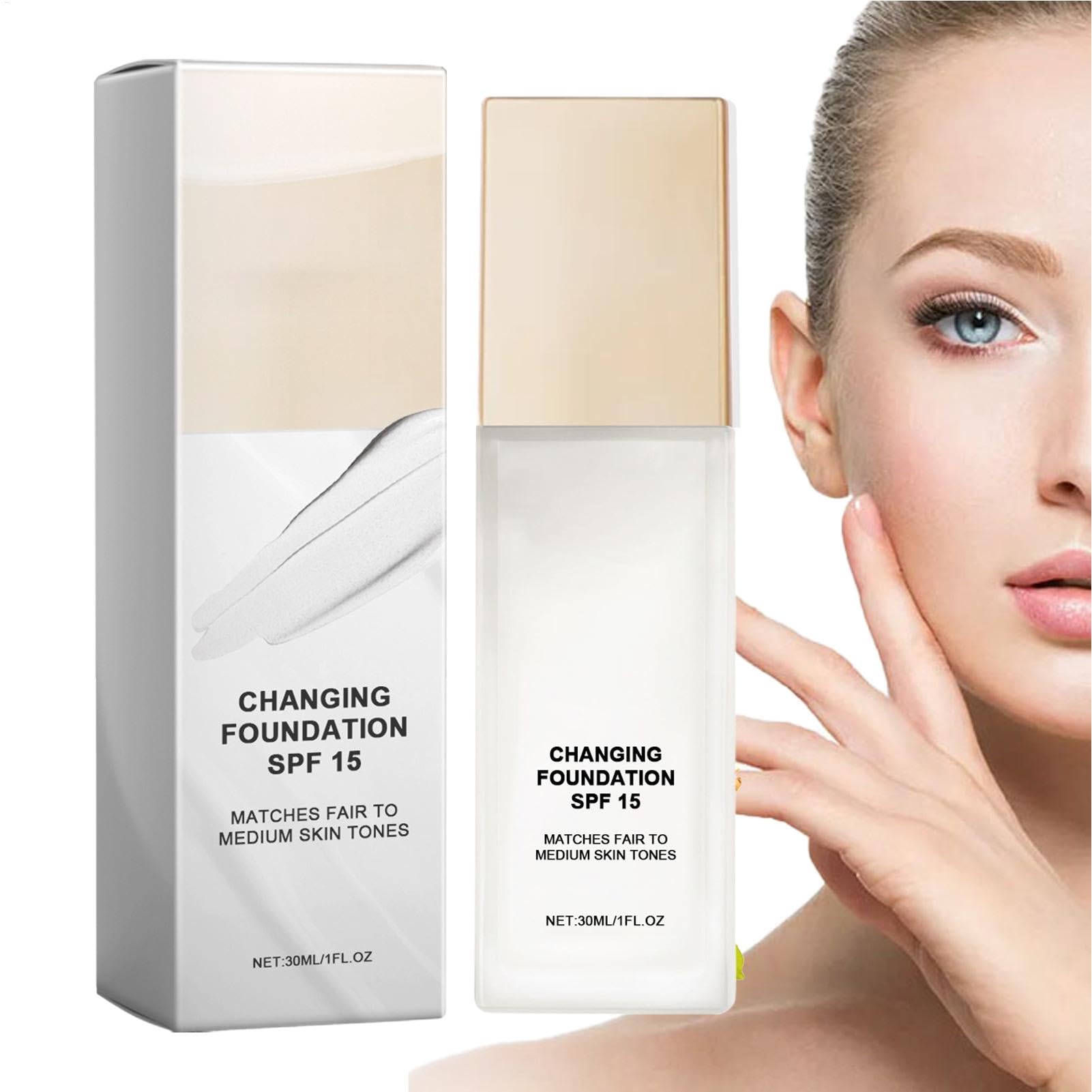 DESCRIPTION DU PRODUIT DESCRIPTION DU PRODUIT Achieve a look with the 30ml Color Matching Foundation! This innovative color-changing liquid concealer adapts to your skin tone, providing seamless coverage for women and girls. Perfect for daily use, it conceals imperfections, evens skin tone, and delivers a natural finish with a lightweight feel. Its hydrating formula ensures all-day comfort while offering buildable, long-lasting coverage. Ideal for any makeup routine, this foundation simplifies achieving a smooth, radiant complexion! Specification: Net content: 30ml Pack List: Color changing foundation 1 AVERTISSEMENT DE SÉCURITÉ N'est pas applicableEffortless Use: With a simple application of our color-changing foundation using a beauty sponge or makeup brush, your skin tone is effortlessly evened out. A perfect finish that lasts all day without any effort. Natural Makeup: Adapting seamlessly to match your skin tone, this formula provides light, natural coverage that minimizes imperfections with ease. Boost your complexion and confidence with the effortless application for a perfect finish. Long-Lasting Formula: Ensuring a perfect, natural look suitable for all skin types, this color changing foundation is ideal for daily activities including the gym, sports, and dance classes. Practical Function: Achieve a perfect, effortless blend with our color-changing foundation, a great alternative to heavy foundation and concealer. Its formula mimics your natural skin tone for a perfect finish that enhances your complexion. For Most Occasions: Our color changing foundation adapts to your unique needs, whether you have dry, oily, or combination skin, providing perfect coverage and a unique, seamless finish.Color Foundation, Liquid Concealer, Face Makeup, Daily Use, Changing Concealer, Adjustable Color, Women's Makeup, Girls Concealer, Even Skin, S Face Liquid Cover Concealer For Women Girls, Face PrimerDESCRIPTION DU PRODUIT DESCRIPTION DU PRODUIT Achieve a look with the 30ml Color Matching Foundation! This innovative color-changing liquid concealer adapts to your skin tone, providing seamless coverage for women and girls. Perfect for daily use, it conceals imperfections, evens skin tone, and delivers a natural finish with a lightweight feel. Its hydrating formula ensures all-day comfort while offering buildable, long-lasting coverage. Ideal for any makeup routine, this foundation simplifies achieving a smooth, radiant complexion! Specification: Net content: 30ml Pack List: Color changing foundation 1 AVERTISSEMENT DE SÉCURITÉ N'est pas applicableEffortless Use: With a simple application of our color-changing foundation using a beauty sponge or makeup brush, your skin tone is effortlessly evened out. A perfect finish that lasts all day without any effort. Natural Makeup: Adapting seamlessly to match your skin tone, this formula provides light, natural coverage that minimizes imperfections with ease. Boost your complexion and confidence with the effortless application for a perfect finish. Long-Lasting Formula: Ensuring a perfect, natural look suitable for all skin types, this color changing foundation is ideal for daily activities including the gym, sports, and dance classes. Practical Function: Achieve a perfect, effortless blend with our color-changing foundation, a great alternative to heavy foundation and concealer. Its formula mimics your natural skin tone for a perfect finish that enhances your complexion. For Most Occasions: Our color changing foundation adapts to your unique needs, whether you have dry, oily, or combination skin, providing perfect coverage and a unique, seamless finish.