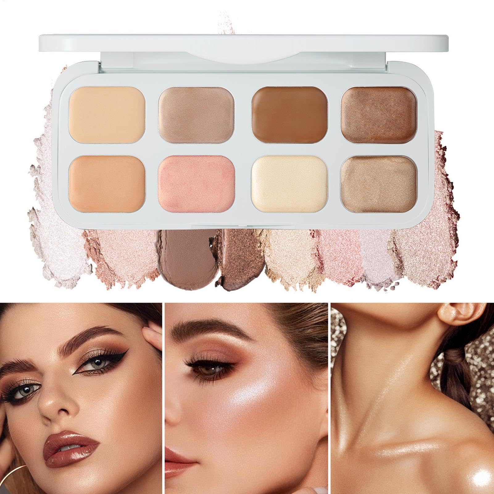 Perfect Gift for Girls: A complete makeup kit suitable for beginners and professionals, making it a thoughtful gift for birthdays, holidays, or special occasions. Compact Portable: The sleek palette design is lightweight and travel-friendly, perfect for on-the-go touch-ups and daily use. Multi-Purpose Use: Ideal for concealing imperfections, color correcting, and enhancing eyes, making it a versatile addition to your makeup routine. Long-Lasting Formula: Features a highly pigmented and smudge-proof formula that ensures your makeup stays all day. 8 Versatile Shades: Includes 8 blendable cream shades for eye shadow, concealing, and color correction, perfect for creating seamless makeup looks.
