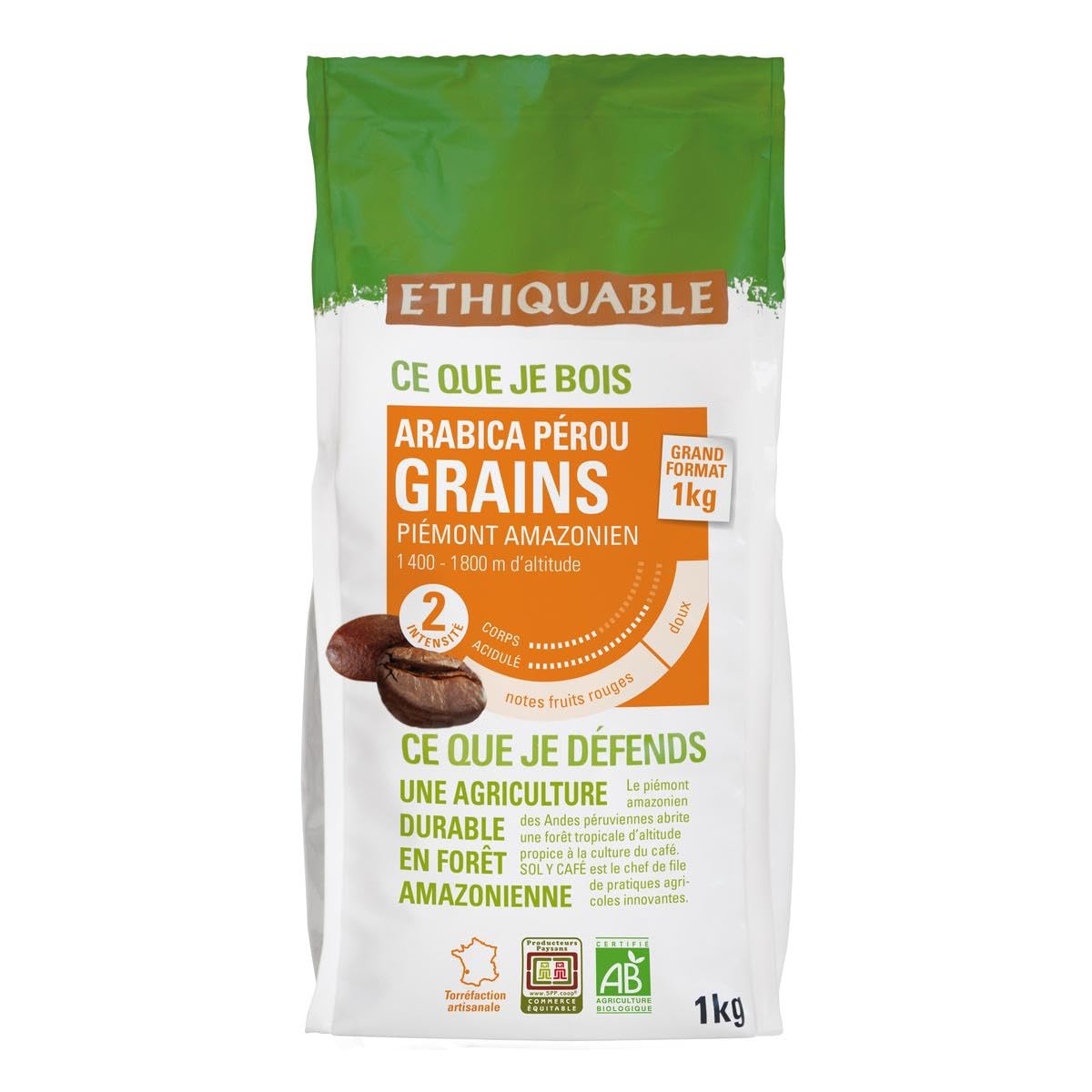 ETHIQUABLE - Ethiquable Café En Grains Arabica D'Altitude Du Pérou Bio, 1Kg - 1Kg - Lot De 2 - Vendu Par Lot