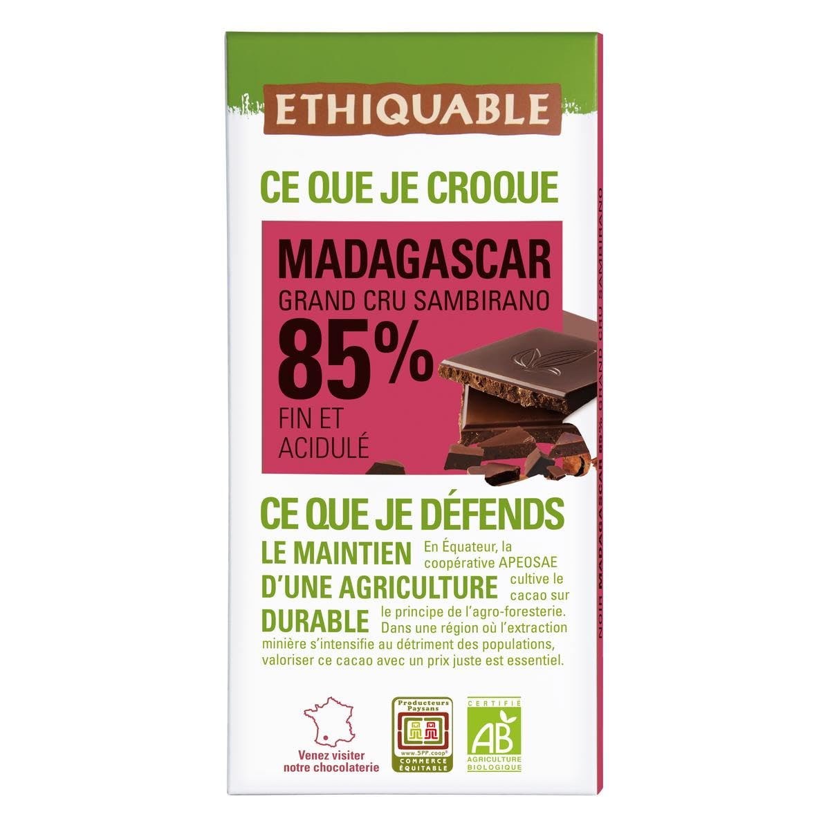 ETHIQUABLE - Ethiquable Chocolat Noir Bio 85 Cacao Madagascar, 100G - 100G - Lot De 3 - Vendu Par Lot