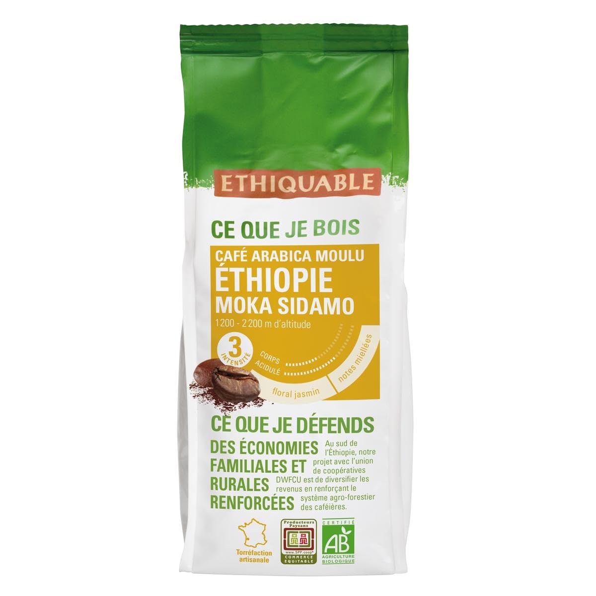G n rique ETHIQUABLE - Ethiquable Organic Ground Mocha Sidamo Coffee from Ethiopia Kivu 250g - 250g - Pack of 3 - Sold in Packs