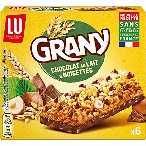 GRANY Barres Chocolatées aux Noisettes - Le Petit Déjeuner Gourmand en Format 138g - Idéal pour les Céréales et Barres de Tous les Jours! - Lot De 4 - Vendu Par Lot