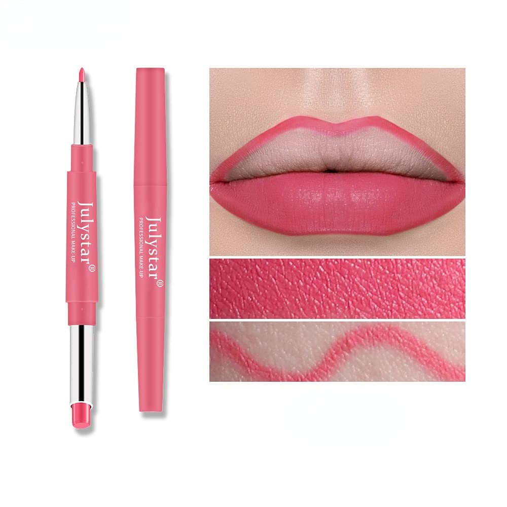 INTEROOKIE Double tête rouge à lèvres lipliner non fondu, non collant à la tasse maquillage stylo rouge à lèvres rotatif rose (M08 )