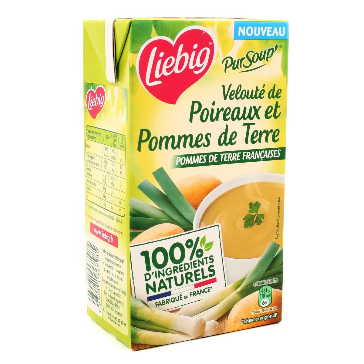 100 natural ingredients What's in it? ✓ Good vegetables ✓ Water ✓ Natural ingredients And that's all! No artificial colors No preservatives² No flavor enhancers ²In accordance with regulations. Onions Leeks Spinach Potatoes Quality Guaranteed Our vegetables are carefully selected and picked at their peak. With 30 years of expertise, we prepare them in our factory near Avignon in Provence. To guarantee their preservation without any added preservatives, our soups are heated to a high temperature before being packaged in cartons. Our quality team checks our soups daily to ensure the best products. INGREDIENTS Ingredients: Tomato juice from concentrate 65 , water, corn starch, sugar, skimmed milk powder, salt, cooking butter, rapeseed oil, natural flavorings (contains milk), concentrated lemon juice. May contain traces of celery, wheat (gluten), and egg.LIEBIG - Liebig Velouté De Poireaux Pommes De Terre, 1L - 1L - Lot De 2 - Vendu Par LotDESCRIPTION DU PRODUIT DESCRIPTION DU PRODUIT 100 d'ingrédients naturels C'est quoi ? ✓ des bons légumes ✓ de l'eau ✓ des ingrédients naturels Et c'est tout ! Sans colorant Sans conservateur² Sans exhausteur de goût ²Conformément à la réglementation. Oignons Poireaux Épinards Pommes de terre Qualité Garantie Nos légumes sont sélectionnés avec soin et cueillis à maturité. Riches de 30 ans de savoir-faire, nous les cuisinons dans notre usine près d'Avignon en Provence. Pour garantir leur conservation sans aucun ajout de conservateur, nos soupes sont chauffées à haute température avant d'être mises en brique. Notre équipe qualité contrôle quotidiennement nos soupes afin de garantir les meilleurs produits. INGRÉDIENTS Ingrédients: jus de tomate à base de concentré 65 ,eau,amidon de maïs,sucre,LAIT écrémé en poudre,sel,BEURRE de cuisine,huile de colza,arômes naturels (contient LAIT),jus de citron concentré. Peut contenir des traces de CELERI, BLE (GLUTEN) et OEUF.
