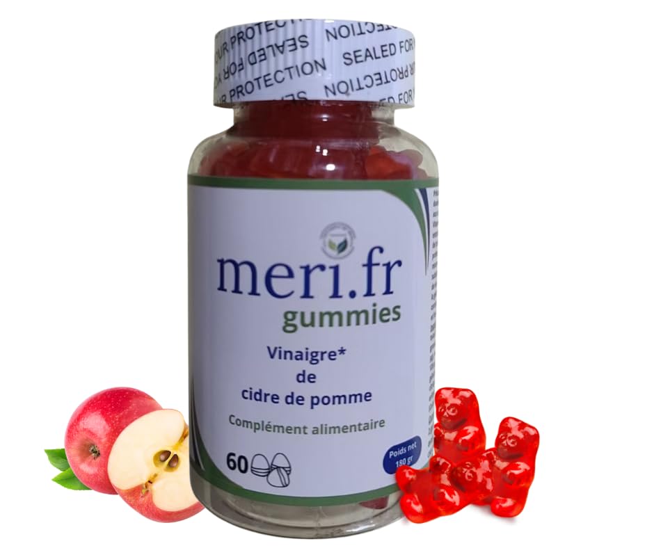 Meri.fr Gummies Vinaigre de Cidre de Pomme, Bonbons Gélifiés, 60 Unités