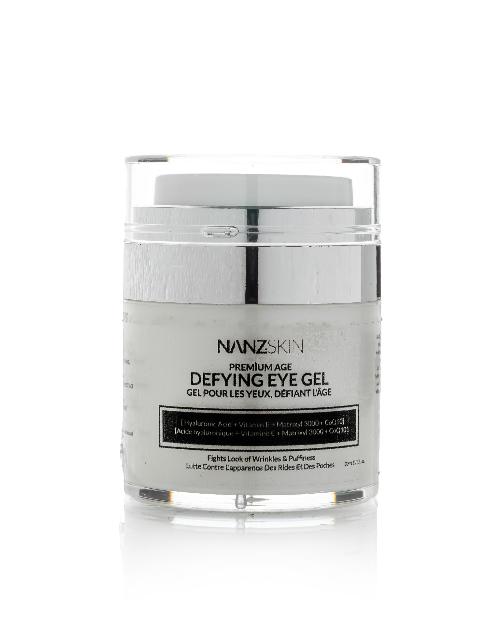 Nanzskin Premium Age-Defying Eye Gel Nanzskin Premium Age-Defying Eye Gel is a clear, lightweight gel designed to firm, brighten, hydrate, and refresh the delicate skin around the eyes for a youthful, radiant appearance. Suitable for all skin types. Clinical Benefits Visibly reduces dark circles, puffiness, and fine lines around the eyes. Improves firmness, radiance, and hydration for a rejuvenated look. Supports youthful, radiant skin around the eyes. Key Ingredients Hyaluronic Acid: Deeply hydrates and plumps the skin. Matrixyl 3000: Stimulates collagen production to reduce fine lines. Vitamin E: Protects and nourishes the skin for a healthy, radiant appearance. Directions for use: Apply a small amount of gel to the skin around the eyes morning and evening. Gently pat until the gel is completely absorbed. Other ingredients: Aqua, Glycerin, Butylene Glycol, Dimethyl Sulfone, Ammonium Acryloyldimethyltaurate VP Copolymer, Carbomer, Triethanolamine, Niacinamide, Tocopheryl Acetate, Panthenol, Palmitoyl Tripeptide-5, Beta-Glucan, Ubidecarenone (CoQ1000), Ceramide 3, Sodium Hyaluronate, Polyglyceryl-10 Oleate, Collagen, Scutellaria Baicalensis Extract, Palmitoyl Oligopeptide, Hydroxyacetophenone, 1,2-Hexanediol, Phenoxyethanol, Ethylhexylglycerin, Folic Acid, Bacillus Soya Ferment Extract. Safety. For external use only. Avoid contact with eyes. If irritation occurs, discontinue use and consult a doctor. Keep out of reach of children. Why choose Nanzskin? Lightweight, fast-absorbing formula. Suitable for all skin types, including the sensitive skin around the eyes. Formulated with proven active ingredients to hydrate and tone. SAFETY WARNING For external use only. Avoid direct contact with eyes. If irritation occurs, discontinue use immediately and consult a doctor. Keep out of reach of children.Suitable for all skin types: This lightweight, fast-absorbing gel can be used morning and night for a radiant look. Protection and nourishment: Vitamin E and CoQ10 protect sensitive skin from harmful aggressors and provide intense nourishment. Anti-aging: Matrixyl 3000 stimulates collagen production and reduces fine lines and wrinkles around the eyes. Deep hydration: Enriched with hyaluronic acid to intensely hydrate and plump the skin for a fresh, healthy appearance. Powerful eye care: Nanzskin Premium Age Defying Eye Gel helps visibly reduce dark circles, puffiness, and fine lines for a youthful appearance.NANZSKIN Premium Age Defying Eye Gel - House of NanzDESCRIPTION DU PRODUIT DESCRIPTION DU PRODUIT Nanzskin Premium Age-Defying Eye Gel Nanzskin Premium Age-Defying Eye Gel est un gel clair et léger conçu pour raffermir, éclaircir, hydrater et rafraîchir la peau délicate du contour des yeux pour une apparence jeune et éclatante. Convient à tous les types de peaux. Avantages cliniques Réduit visiblement les cernes, les poches et les ridules autour des yeux. Améliore la fermeté, la luminosité et l'hydratation pour un look rajeuni. Soutient une peau jeune et éclatante autour des yeux. Principaux ingrédients Acide hyaluronique : hydrate en profondeur et repulpe la peau. Matrixyl 3000 - stimule la production de collagène pour réduire les ridules. Vitamine E - Protège et nourrit la peau pour un look sain et éclatant. Mode d'emploi : Appliquez quotidiennement une petite quantité de gel sur la peau autour des yeux matin et soir. Tamponnez doucement jusqu'à ce que le gel soit complètement absorbé. Autres ingrédients Aqua, Glycérine, Butylène Glycol, Diméthylsulfone, Ammonium Acryloyldiméthyltaurate Copolymère VP, Carbomère, Triéthanolamine, Niacinamide, Tocopheryl Acétate, Panthénol, Palmitoyl Tripeptide-5, Bêta-Glucan, Ubidécarenone (CoQ1000) ), Céramide 3. , Hyaluronate de sodium, oléate de polyglycéryl-10, collagène, extrait de Scutellaria Baicalensis, Palmitoyl Oligopeptide, Hydroxyacétophénone, 1,2-Hexanediol, Phénoxyéthanol, Ethylhexylglycérine, Acide folique, Bacillus Soya Ferment Extrait. Sécurité. Pour usage externe uniquement. Éviter le contact avec les yeux. En cas d'irritation, arrêtez l'utilisation et consultez un médecin. Tenir hors de portée des enfants. Pourquoi choisir Nanzskin ? Formule légère et à absorption rapide. Convient à tous les types de peau, y compris la peau sensible autour des yeux. Formule avec des ingrédients actifs éprouvés pour hydrater et tonifier. AVERTISSEMENT DE SÉCURITÉ Pour usage externe uniquement. Évitez tout contact direct avec les yeux. En cas d'irritation, cessez immédiatement l'utilisation et consultez un médecin. Tenir hors de portée des enfants.Convient à tous les types de peau : gel léger à absorption rapide qui peut être utilisé matin et soir pour un regard éclatant. Protection et nutrition : la vitamine E et le CoQ10 protègent les peaux sensibles des agressions nocives et nourrissent intensément. Anti-âge : le matrixyl 3000 stimule la production de collagène et réduit les ridules et les rides autour des yeux. Hydratation en profondeur : enrichie en acide hyaluronique pour hydrater intensément et repulper la peau, pour un look frais et sain. Soin puissant des yeux : le gel pour les yeux Nanzskin Premium Age Defying aide à réduire visiblement les cernes, les poches et les ridules pour une apparence jeune.
