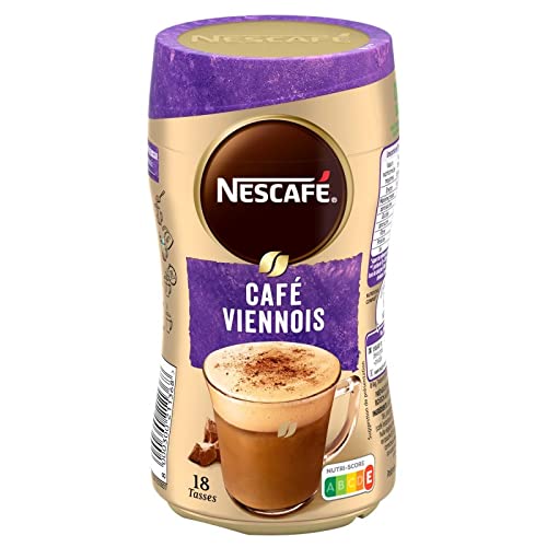 Thanks to our expertise, enjoy a moment of pure indulgence with a delicious Viennese Coffee. Our experts have created a gourmet recipe with carefully selected ingredients: quality coffees combining the finesse of Arabica and the richness of Robusta, a touch of chocolate, and an irresistibly smooth and generous crema. INGREDIENTS Ingredients: Sugar, skimmed milk powder 18 , glucose syrup, chocolate powder 9 (sugar, cocoa), coffee 8.5 (instant coffee 7.9 , ground roasted coffee), vegetable oil (coconut), lactose, acidity regulator (E340), salt, stabilizers (E331, E452), natural flavoring.NESCAFÉ - Cappuccino Café Viennois 306G - Lot De 3 - Vendu Par LotDESCRIPTION DU PRODUIT DESCRIPTION DU PRODUIT Grâce au savoir-faire de , profitez d un moment de pure gourmandise en savourant un délicieux Café Viennois. Nos experts ont créé une recette gourmande aux ingrédients soigneusement sélectionnés : des cafés de qualité alliant la finesse de l arabica et la richesse du robusta, une touche de chocolat et une mousse irrésistiblement onctueuse et généreuse. INGRÉDIENTS Ingrédients: Sucre, LAIT écrémé en poudre 18 , sirop de glucose, chocolat en poudre 9 (sucre, cacao), café 8,5 (café instantané 7,9 , café torréfié moulu), huile végétale (NOIX de coco), LACTOSE, correcteur d'acidité (E340), sel, stabilisants (E331, E452), arôme naturel.
