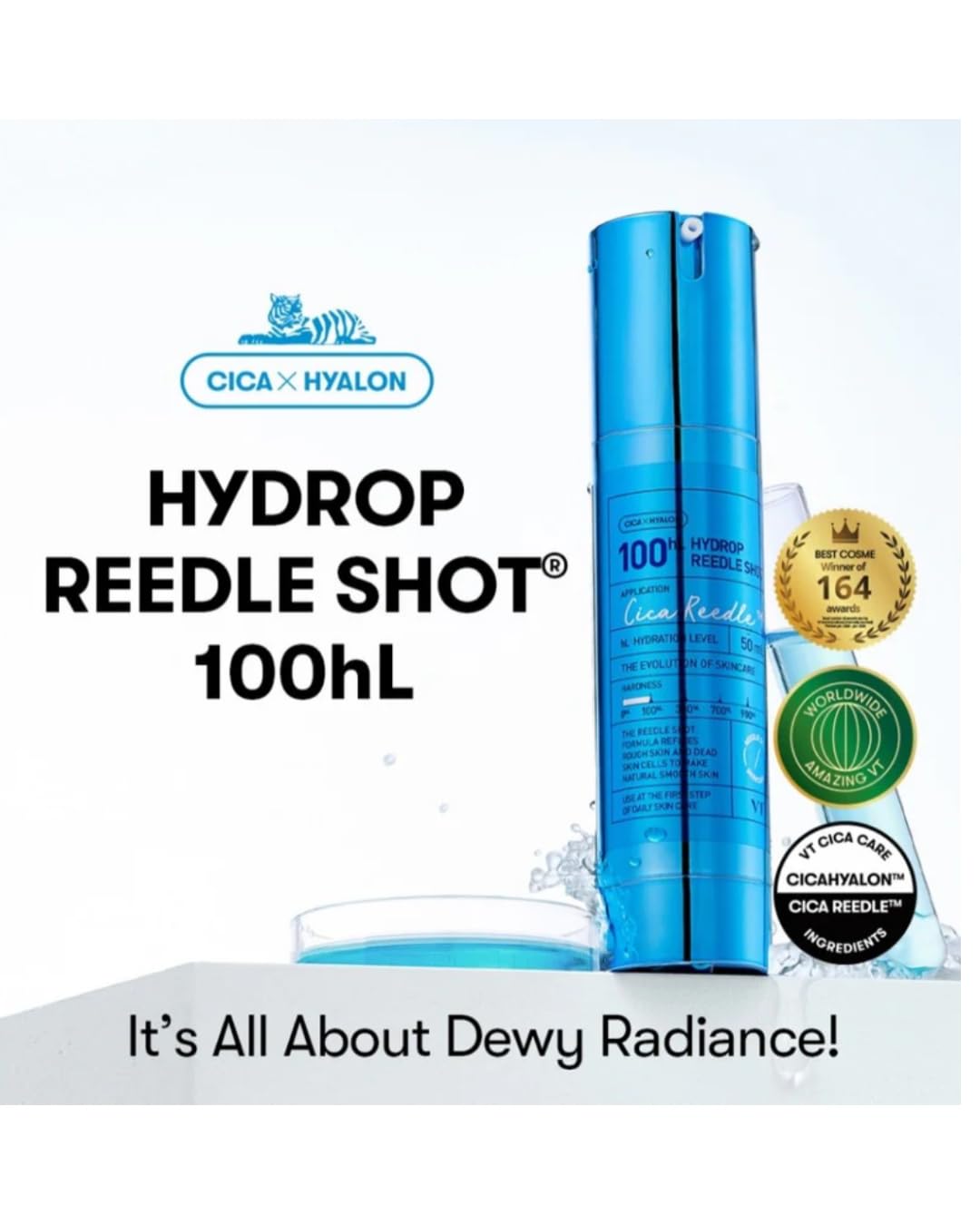 GENEROUS SIZE: 100ml bottle with an ergonomic design for easy daily use. VISIBLE RESULTS: Provides a radiant complexion and a more youthful appearance with regular use. ADVANCED TECHNOLOGY: Precise dispensing system for controlled and effective application. EXCLUSIVE FORMULA: Unique combination of CICA and hyaluronic acid for optimal hydration. INTENSE HYDRATION: Innovative Hydrop Reedle Shot 100ml hydrating serum for radiant, hydrated skin.