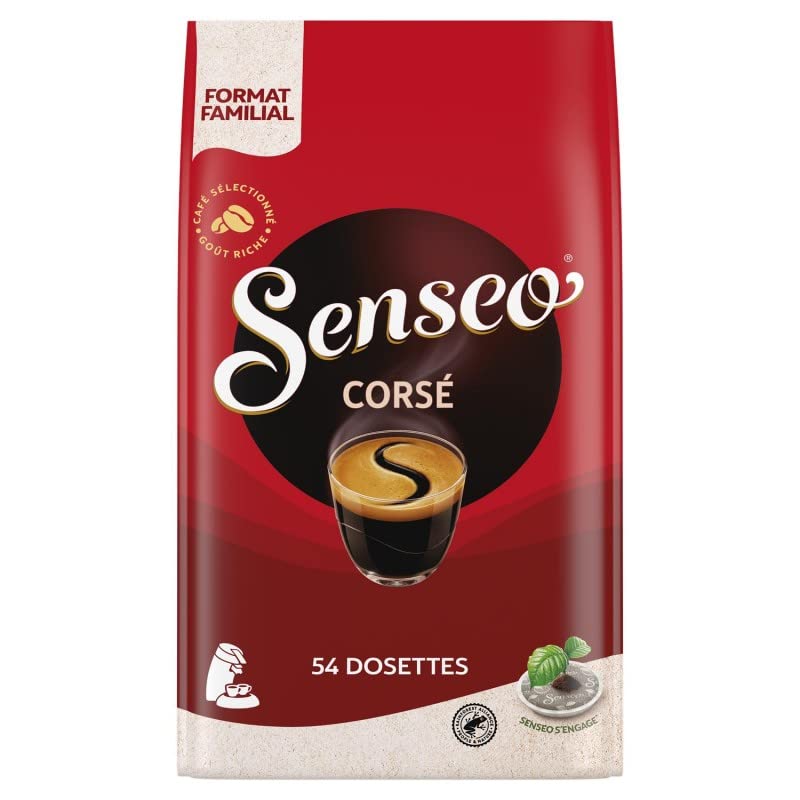 DESCRIPTION DU PRODUIT Plongez dans l'arôme riche et intense du café SENSEO Corsé, un mélange de grains arabica et robusta intensément torréfiés, recouvert d'une délicate mousse. SENSEO vous propose un café 100 certifié UTZ et des dosettes de café compostables industriellement. Ne pas jeter dans la nature. Le label « Certifié UTZ » garantit que le café contenu dans les dosettes de café SENSEO a été cultivé et récolté de manière durable d'un point de vue social et environnemental.