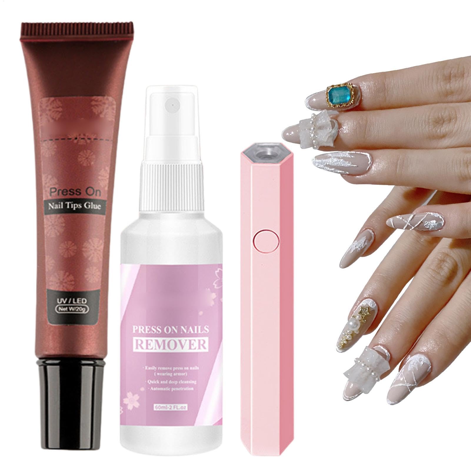 Our press-on gel nail glue is made with high-quality materials, ensuring a secure and long-lasting hold without harming your skin or eyes. Featuring a convenient press-on nozzle and an easy-to-use nail glue remover, it's perfect for a wide range of nail applications. Specification: Net capacity: 20g nail glue. 60ml nail glue remover spray. Product list: 1 Press-on nail glue 1 Nail glue remover spray 1 Nail lamp Notes: Due to lighting effects and shooting angles, there may be a slight color difference in the product. Please understand. Due to manual measurement, there may be a slight tolerance in the product size. The actual product may vary. Thank you!Perfect Gift: Ideal as a birthday or holiday gift, this solid nail glue gel makes a practical and unique present for family and friends. Wide Range of Uses: Ensures quick bonding and removal, effortlessly applying press-on nails, nail tips, and more. Its versatility is unmatched, meeting the needs of various nail applications. Effortless Use: Say goodbye to the hassle of nail repair with our solid nail glue gel. Its press-on nozzle and complete tool set make application easy, while the included nail glue remover ensures easy removal. Rechargeable Lamp: Experience fast curing with our low-heat UV nail lamp, designed to be rechargeable, protective, and portable, ensuring no harm to eyes or skin. Gentle Material: Our soft-formula solid nail glue gel is made with high-quality materials to ensure your nails stay in place for an extended period. It won't damage your nails, so you can achieve a long-lasting hold.Colle à Ongles en Gel Solide,Gel de Colle Solide pour Ongles - Presse multifonctionnelle sur la colle pour pointes d'ongles Gel de colle à ongles solide puissant pour presser les ongles, Spray dissoDESCRIPTION DU PRODUIT Notre colle gel pour ongles à presser est fabriquée avec des matériaux de haute qualité, garantissant une tenue sûre et durable sans nuire à votre peau ou à vos yeux. Doté d'une buse à pression pratique et d'un dissolvant de colle à ongles facile à utiliser, il est parfait pour une large gamme d'applications sur les ongles. Spécification: Capacité nette : colle à ongles 20 g. Spray dissolvant pour ongles 60 ml Liste de produits : 1 colle à pression sur les pointes des ongles 1 spray dissolvant pour ongles 1 lampe à ongles Remarques : En raison des effets d'éclairage et des angles de prise de vue, il existe une différence de couleur dans le produit, veuillez comprendre. En raison de la mesure manuelle, il existe une tolérance dans la taille du produit. Le produit réel prévaudra, merci !Cadeau parfait : idéal comme cadeau d'anniversaire et de vacances, ce gel de colle à ongles solide constitue un cadeau pratique et unique pour votre famille et vos amis. Large gamme d'utilisations : assure une liaison et un retrait rapides, apposant sans effort des clous à pression, des pointes d'ongles, et plus encore. Sa polyvalence est inégalée, répondant à diverses applications d'ongles. Utilisation sans effort : dites adieu aux tracas liés à la réparation des ongles avec notre gel colle solide pour ongles. Sa buse à pression et son ensemble complet d'outils facilitent l'application, tandis que le dissolvant de colle à ongles inclus assure un retrait facile. Lampe rechargeable : faites l'expérience d'un durcissement rapide avec notre lampe à ongles UV à faible chaleur, conçue pour être rechargeable, protectrice et portable, garantissant ainsi aucun dommage aux yeux ou à la peau. Matériau doux : notre gel de colle à ongles solide à formule douce est fabriqué avec des matériaux de haute qualité pour garantir que vos ongles restent en place pendant une période prolongée. Cela n'endommagera pas vos ongles, vous pourrez donc obtenir une tenue longue durée.