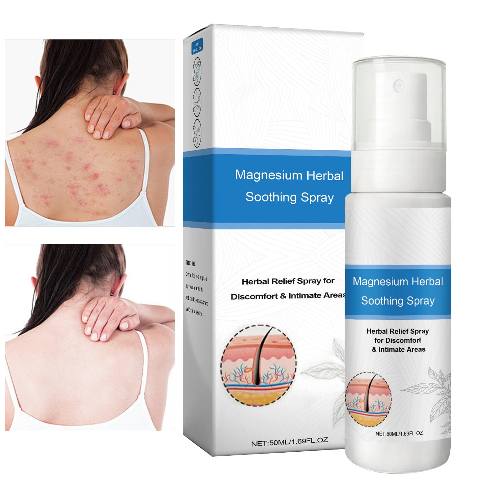 The Soothing Body Spray offers a refreshing solution to repair and revitalize skin affected by dryness, tightness, redness, or sensitivity. Suitable for both women and men, this versatile spray is designed for daily use in various situations, such as at the studio, while traveling, or at the gym. Its lightweight formula helps balance dry and oily areas, providing soothing relief for sensitive skin. The easy-to-use spray ensures rapid absorption without leaving a sticky residue, making it an essential addition to your skincare routine. Enjoy comfort and hydration wherever you go with the Soothing Body Spray. Features: Capacity: 50 ml Product Size: Approx. 3.5 x 3.5 x 12.2 cm 1.38 x 1.38 x 4.8 inches Package List: 1 Skin Soothing Spray Note: Due to different lighting and screen settings, the item's color may be slightly different from the picture. Due to different manual measurements, please allow a 1-2 cm size difference. SAFETY WARNING Not applicableTravel-Friendly Compact Design: Thanks to its innovative press-spray nozzle, this body spray offers hygienic, touchless hydration—a convenient solution for active lifestyles at home, at work, or outdoors, ensuring nourished skin all day long. Sensitive Skin Relief: The Soothing Skin Spray combines magnesium for skin recovery with a calming effect on redness and dryness, providing relief during sensitive periods while promoting a calm complexion in daily skincare routines. Daily Protection: Its pH-balanced formula is suitable for both dry and oily skin, offering optimal use under various conditions for reliable daily skincare. Breathable Moisturizing Barrier: Thanks to its instantly absorbed mist, it leaves an invisible, non-sticky moisturizing layer, perfect for refreshing skin or setting makeup throughout the day. Restructuring Formula: Penetrates the skin's surface for deep repair, reduces environmental irritation, and restores the skin barrier, while strengthening its natural resilience. Suitable for everyday use after harsh conditions.Brume Apaisante Pour La Peau 50ml Brume Hydratante Visage Peau Sensible Soin Visage Rafraîchissant Rougeurs Sécheresse Grasse Quotidien Après Soleil Sport VoyageDESCRIPTION DU PRODUIT DESCRIPTION DU PRODUIT Le Spray Apaisant Corps offre une solution rafraîchissante pour réparer et revitaliser la peau touchée par la sécheresse, les sensations de tiraillement, les rougeurs ou la sensibilité. Adapté aux femmes comme aux hommes, ce spray polyvalent est conçu pour une utilisation quotidienne dans diverses situations, telles qu'en studio, en voyage ou à la salle de sport. Sa formule légère aide à équilibrer les zones sèches et grasses, procurant un soulagement apaisant pour les peaux sensibles. Le spray facile à utiliser assure une absorption rapide sans laisser de résidus collants, ce qui en fait un ajout indispensable à votre routine de soins de la peau. Profitez de confort et d'hydratation où que vous alliez avec le Spray Apaisant Corps. Caractéristiques: Capacité : 50 ml Taille du produit: environ 3,5x3,5x12.2 cm 1,38x1.38x4,8 pouces Liste de colisage: 1 pulvérisation apaisante de la peau Note: En raison de différents paramètres d'éclairage et d'écran, la couleur de l'élément peut être légèrement différente de l'image. En raison de différentes mesures manuelles, veuillez permettre une différence de taille de 1 à 2 cm. AVERTISSEMENT DE SÉCURITÉ N'est pas applicableDesign Compact Voyage: Grâce à sa buse pression-spray innovante, ce corporel offre une hydratation hygiénique sans contact, une solution pratique pour les styles de vie actifs à la maison, au travail ou en extérieur, garantissant une peau nourrie toute la journée. Soulagement Peau Sensible: Le Spray Apaisant pour la Peau associe du magnésium pour la récupération cutanée à un effet apaisant sur les rougeurs et la sécheresse, offrant un soulagement pendant les périodes de sensibilité tout en favorisant un teint calme dans les routines de soins quotidiennes. Protection Quotidienne: Son mélange au pH équilibré s'adapte harmonieusement aux peaux sèches et grasses, une utilisation optimale sous diverses conditions pour un soin peau quotidien fiable. Barrière Hydratante Respirante : Grâce à sa brume à absorption immédiate, elle dépose une couche hydratante invisible et non collante, parfaite pour rafraîchir la peau ou fixer le maquillage tout au long de la journée. Formule Restructurante: Pénètre les surfaces cutanées pour une réparation profonde, réduit les irritations environnementales et restaure la barrière de la peau, tout en renforçant sa résistance naturelle. Convient à une utilisation quotidienne après des conditions difficiles.