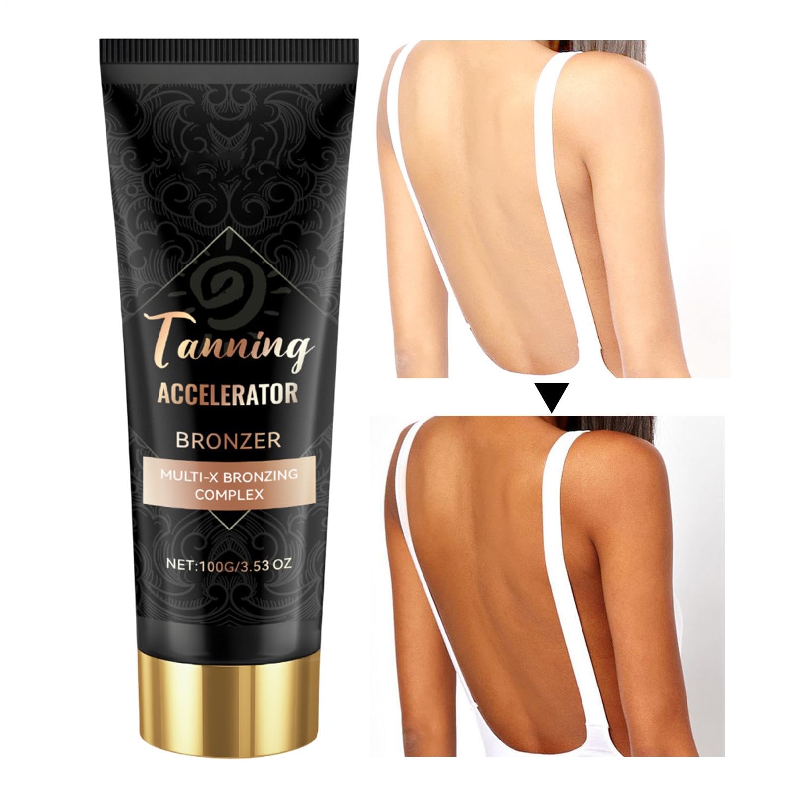 Enhance your tanning experience with our Outdoor Tan Accelerator! This powerful black bronzer features innovative tanning accelerators for instant color. Its deeply nourishing formula can be used with confidence for a flawless tan. Specifications: Net content: 100g Packing List: 1 x Outdoor Tanning Lotion Notes: 1. Due to different monitor and light effects, the actual color of the item might be slightly different from the color shown in the pictures. 2. Please allow for slight measurement deviation due to manual measurement. DIRECTIONS Prepare your skin by cleansing and exfoliating for even application. Apply a generous amount of the lotion to your skin using a sponge or your hands. Allow the product to develop for the recommended time. Rinse or wipe off any excess product. Reapply as needed to maintain your desired color. SAFETY WARNING Not applicable See moreLong-Lasting Results: This Tanning Lotion helps extend the life of your tan, providing deep, long-lasting color that fades gradually. With regular use, you'll notice your tan becoming more vibrant and lasting, giving you that vacation-ready glow all year long. Natural Bronzing Tan Enhancer: Infused with natural bronzers, the Tanning Accelerator delivers an even, streak- tan with a beautiful golden finish. It works well with your skin's natural tone, providing a sunless bronzing. Ideal for Indoor and Outdoor Use: This Tanning Bronzer Lotion is versatile and can be used both on tanning beds and during outdoor sunbathing. Its powerful formula enhances the effects of UV rays, ensuring you get the perfect. Moisturizing Formula for Smooth Skin: Enriched with hydrating ingredients, this Tanning Cream not only accelerates the tanning process but also keeps your skin moisturized and smooth. It nourishes your skin, preventing dryness. Achieve a Beautiful Tan Faster: The Tanning Accelerator is designed to your natural tan by promoting faster and deeper bronzing. Whether you're using it on an indoor tanning bed or basking under the outdoor sun.Tanning Accelerator, Tanning Cream Tanner, 5.91in Bronzer Lotion Moisturizing, Formula Natural Bronzing, Tan Enhancer for Indoor Beds, Outdoor Sun Bathing, Skin CareDESCRIPTION DU PRODUIT DESCRIPTION DU PRODUIT Improve your tanning experience with our Outdoor Tan Accelerator! This powerful black bronzer features innovative tanning accelerators for instant color. Deeply nourishing formula can be used with confidence for a flawless tan. Specifications: Net content: 100g Packing List: 1 x Outdoor Tanning Lotion Notes: 1. Due to the different monitor and light effects, the actual color of the item might be slightly different from the color shown in the pictures. 2. Please forgive a slight measuring deviation due to manual measurement. MODE D'EMPLOI Préparez votre peau en la nettoyant et en la exfoliant pour une application uniforme. Appliquez une quantité généreuse de la lotion sur votre peau en utilisant une éponge ou vos mains. Laissez le produit se développer pendant le temps recommandé. Rincez ou essuyez tout excès de produit. Réappliquez si nécessaire pour maintenir la couleur souhaitée. AVERTISSEMENT DE SÉCURITÉ N'est pas applicable Voir plusLong-Lasting Results: This Tanning Lotion helps extend the life of your tan, providing deep, long-lasting color that fades gradually. With regular use, you'll notice your tan becoming more vibrant and lasting, giving you that vacation-ready glow all year long. Natural Bronzing Tan Enhancer: Infused with natural bronzers, the Tanning Accelerator delivers an even, streak- tan with a beautiful golden finish. It works well with your skin's natural tone, providing a sunless bronzing. Ideal for Indoor and Outdoor Use: This Tanning Bronzer Lotion is versatile and can be used both on tanning beds and during outdoor sunbathing. Its powerful formula enhances the effects of UV rays, ensuring you get the perfect. Moisturizing Formula for Smooth Skin: Enriched with hydrating ingredients, this Tanning Cream not only accelerates the tanning process but also keeps your skin moisturized and smooth. It nourishes your skin, preventing dryness. Achieve a Beautiful Tan Faster: The Tanning Accelerator is designed to your natural tan by promoting faster and deeper bronzing. Whether you're using it on an indoor tanning bed or basking under the outdoor sun.