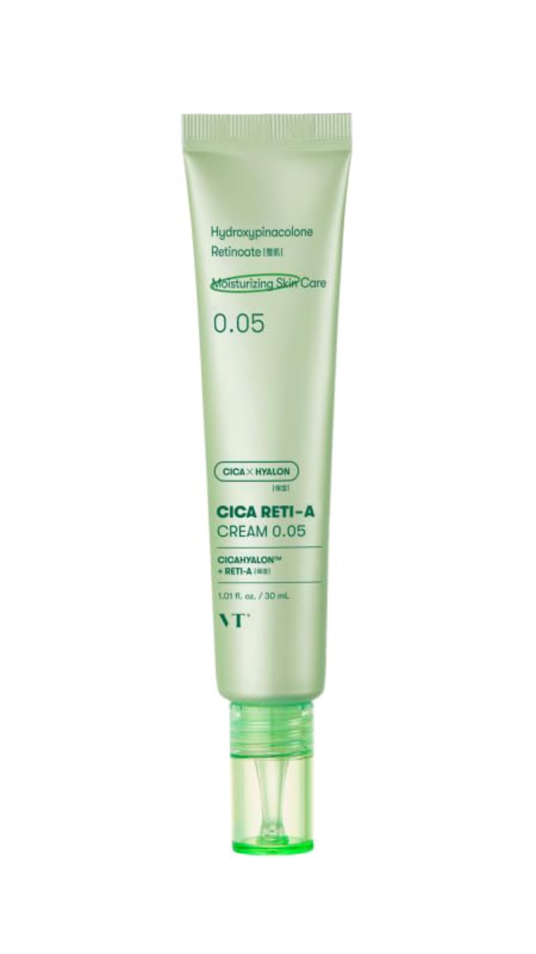 FORMAT: 30ml tube of cream with a precise applicator for controlled dosage. CONCENTRATION: Precise formula containing 0.05 active ingredients for optimal results. BAKUCHIOL: A natural ingredient that minimizes the appearance of pores and improves skin texture. HYDROXYPINACOLONE RETINOATE: A powerful 0.05 anti-aging agent that helps visibly reduce the appearance of fine lines and wrinkles. CICAHYALON: VT's exclusive formula with advanced technology for targeted and effective skincare.