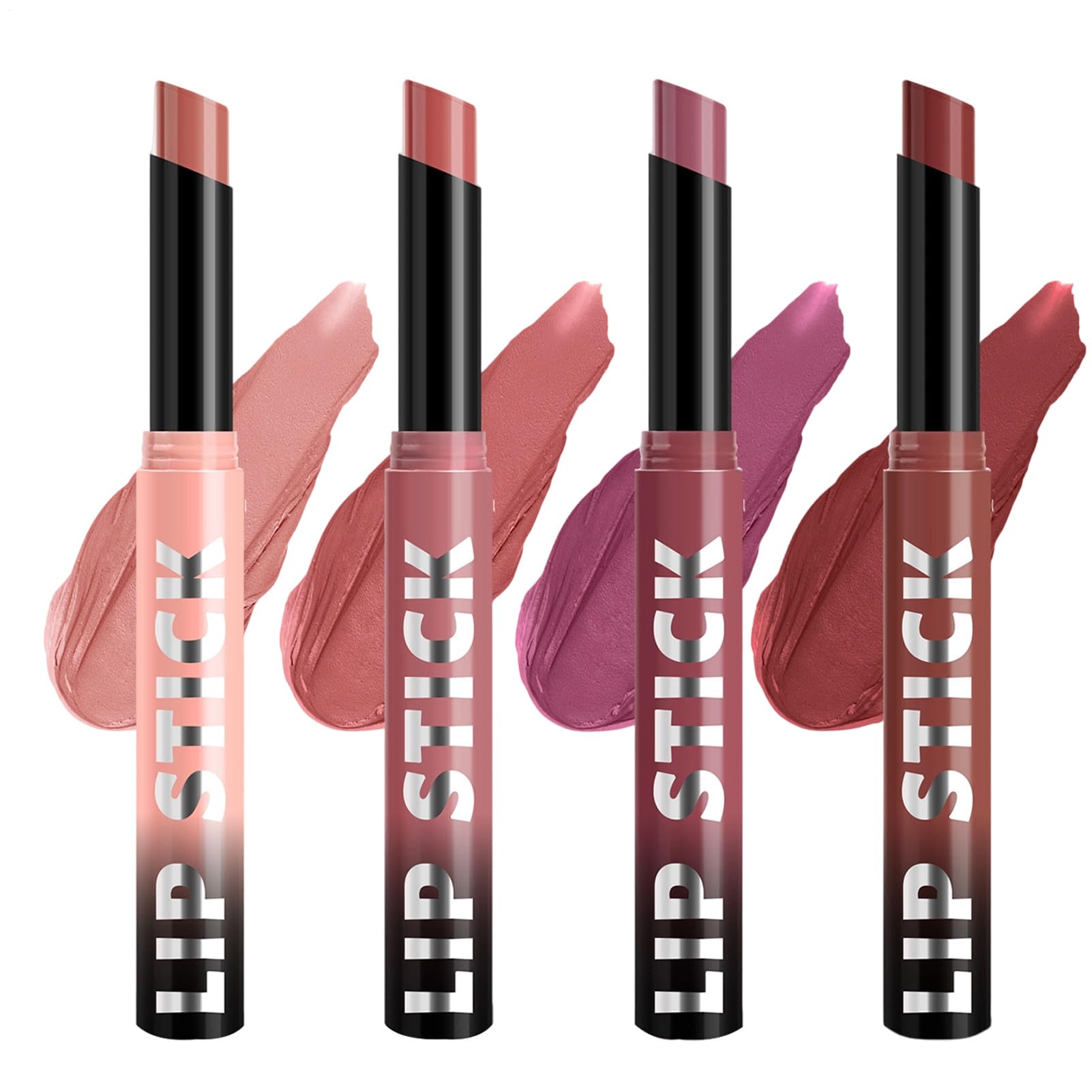 Extreme versatility: This multi-functional matte lipstick set can be applied to both lips and cheeks. The rotating precision tip allows for smooth and even blending for effortless, professional-looking makeup with perfect color transitions. Long-lasting comfort: A ceramide-vitamin E complex prevents tightness for up to 8 hours, suitable for sensitive lips, with an opaque, velvety, non-drying finish. Shine-free matte look: Provides a soft, matte texture with balanced coverage. The perfect combination of contemporary elegance and comfortable wear for a smooth, long-lasting matte result. No fading: An innovative setting formula prevents pigment dullness. The shades maintain their original vibrancy from morning to night thanks to perfect adherence to the lips. Adaptable shades: A collection of 4 vibrant matte shades specially designed for multi-color adaptation—ideal for everyday professional wear as well as romantic evenings—enhancing your natural charm with elegance and versatility.