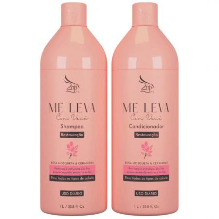 The Zap Me Leva Com Você Hydrating Beauty Rosehip Ceramides is a premium moisturizing shampoo and conditioner set. Formulated with natural, nourishing ingredients such as rosehip and ceramides, this set deeply revitalizes and nourishes your hair. The shampoo gently cleanses while removing unwanted residue, while the conditioner provides intense hydration and radiant shine. With a subtle, soothing fragrance, this set of two 1-liter bottles offers a luxurious hair care experience. Ideal for all hair types, it leaves hair feeling incredibly soft and manageable. SAFETY WARNING Professional use only