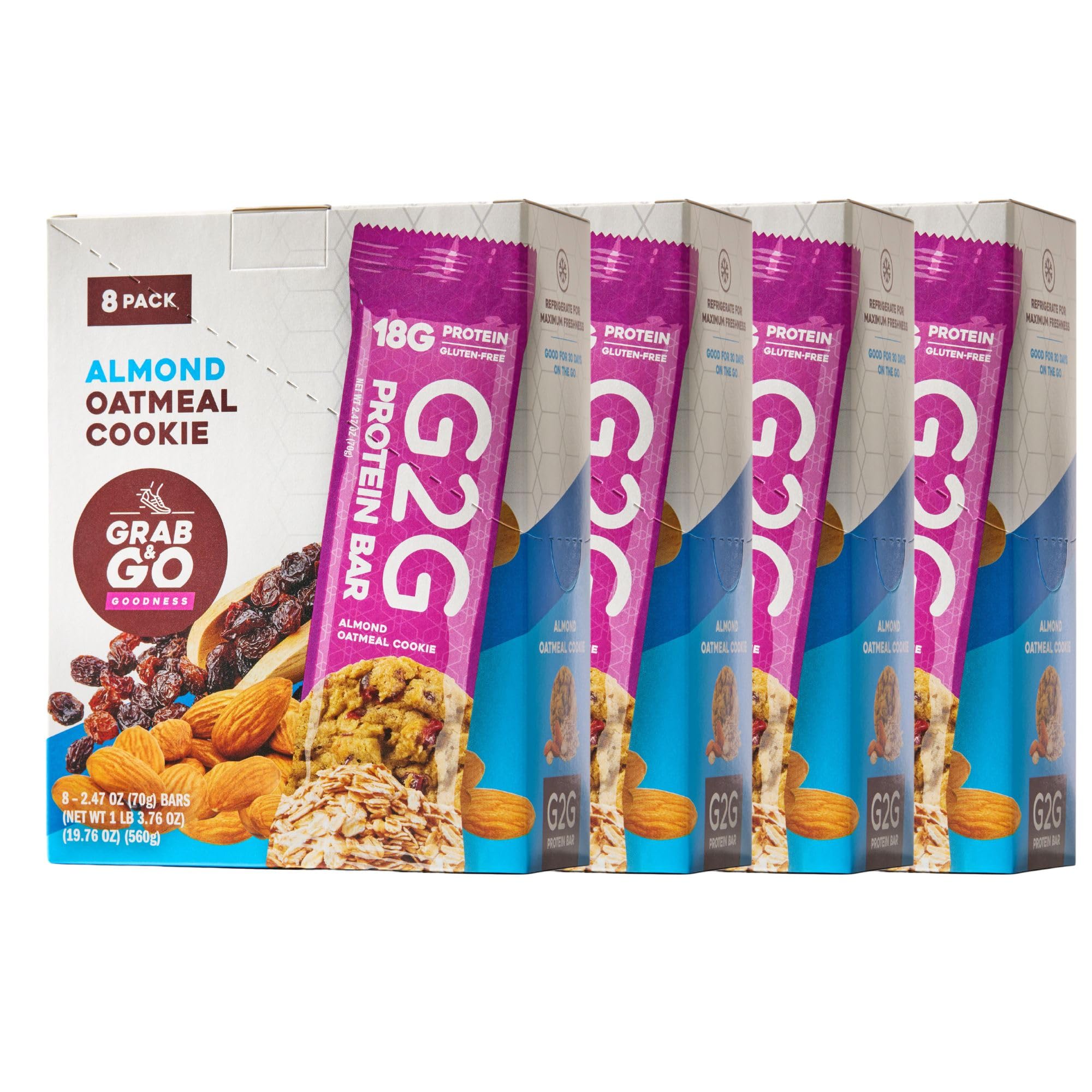 G2G Protein Bar Almond Oatmeal Cookie Real Food Ingredients Refrigerated for Freshness Healthy Snack Delicious Meal Replacement Gluten-Free 32 Count (4 Packs of 8) Almond Cookie Dough Raisin 1 count (Pack of 32)