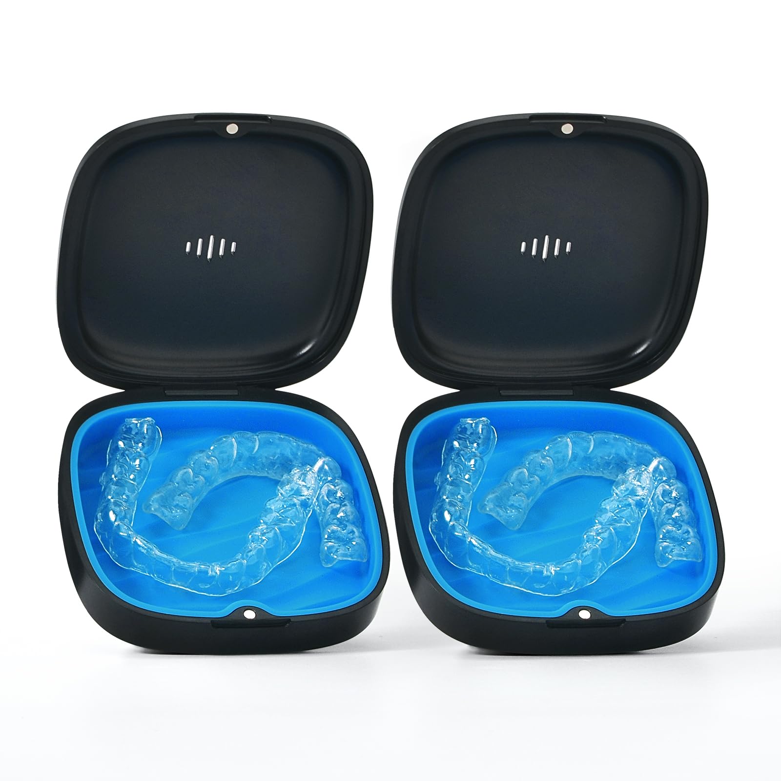 Gaboolo 2 Pack Retainer Case Slim Aligner Case with Vent Holes Removable Inner Tray Silicone for Easy Cleaning (2Pack Black Blue)