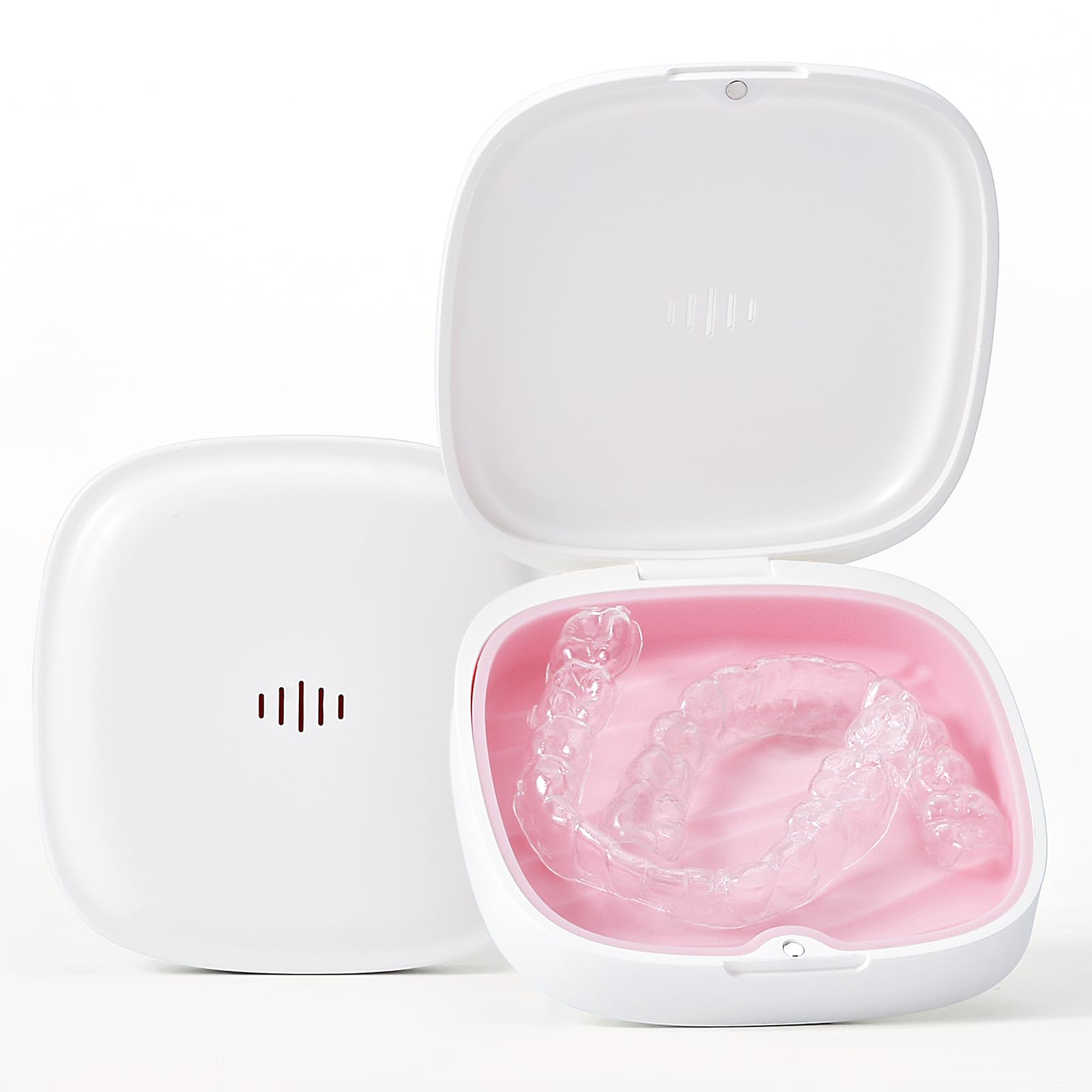 Gaboolo Retainer Case Slim Aligner Case with Vent Holes Removable Inner Tray Silicone for Easy Cleaning (1Pack White Pink)